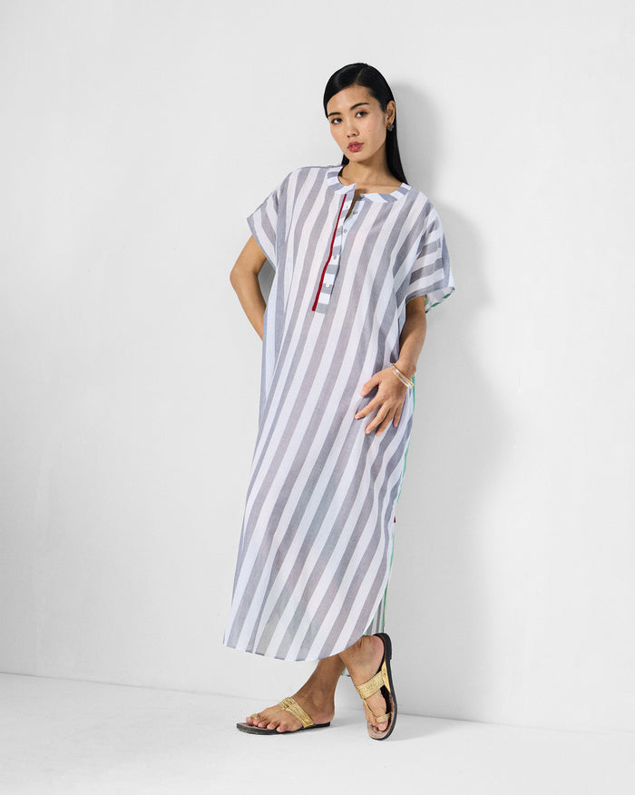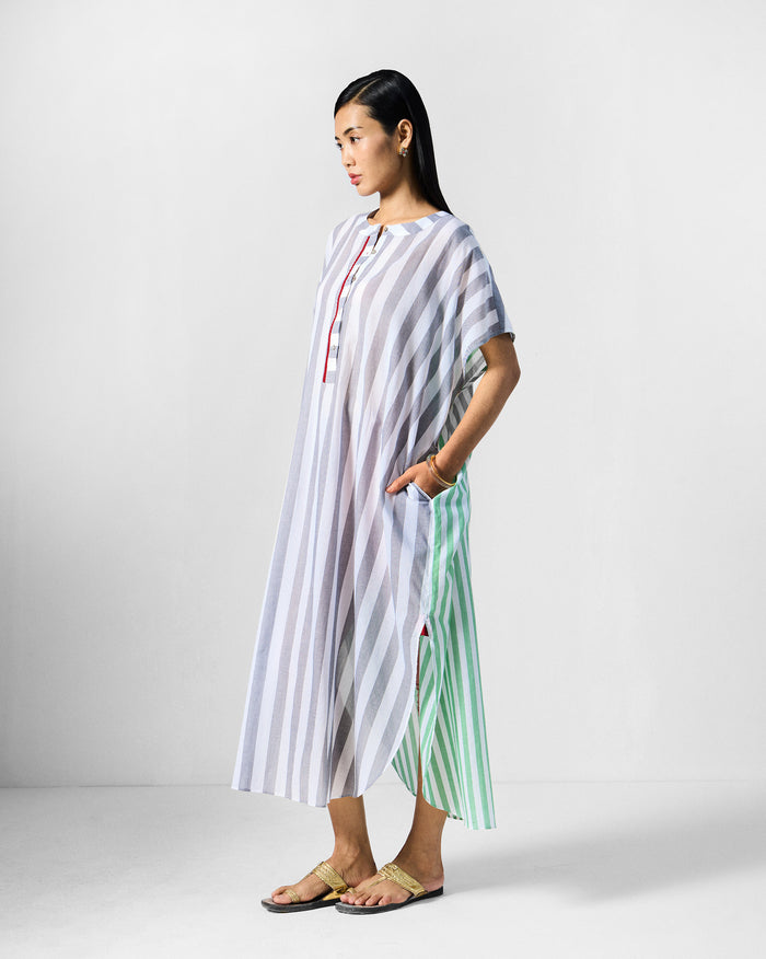 Collared Kaftan - Green & Silver