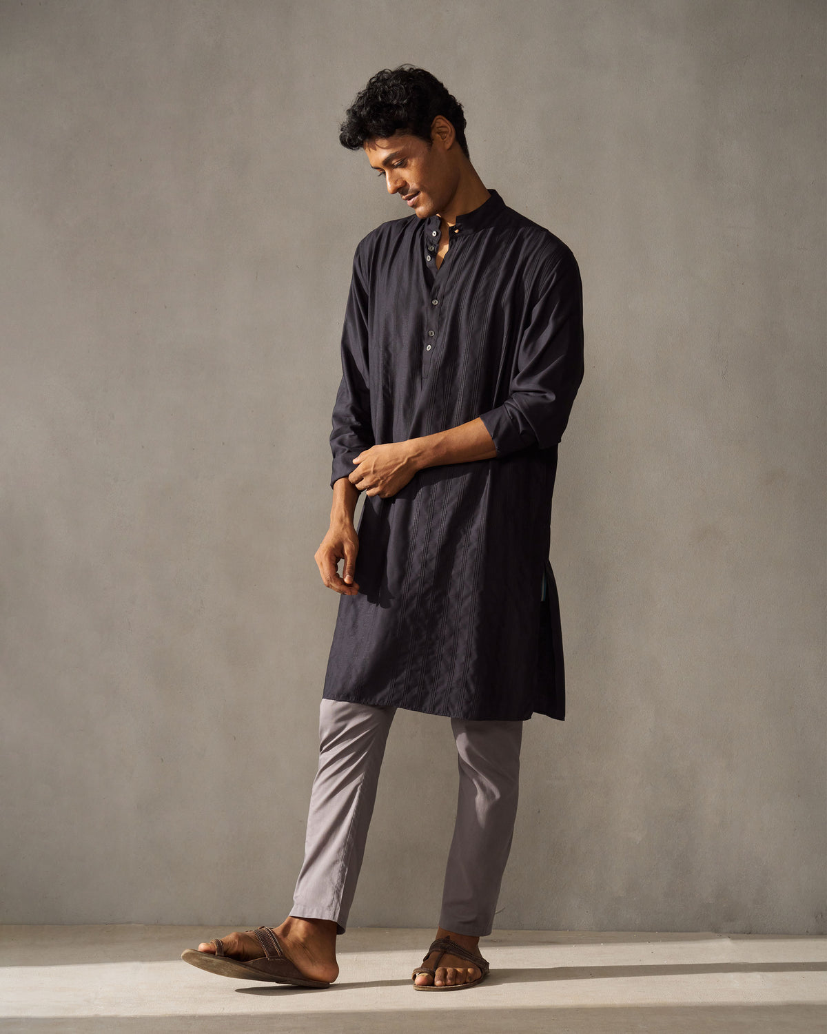 - Crafted in black viscose silk, our pleated kurta in black works great for an intimate gathering or layered up for a party.