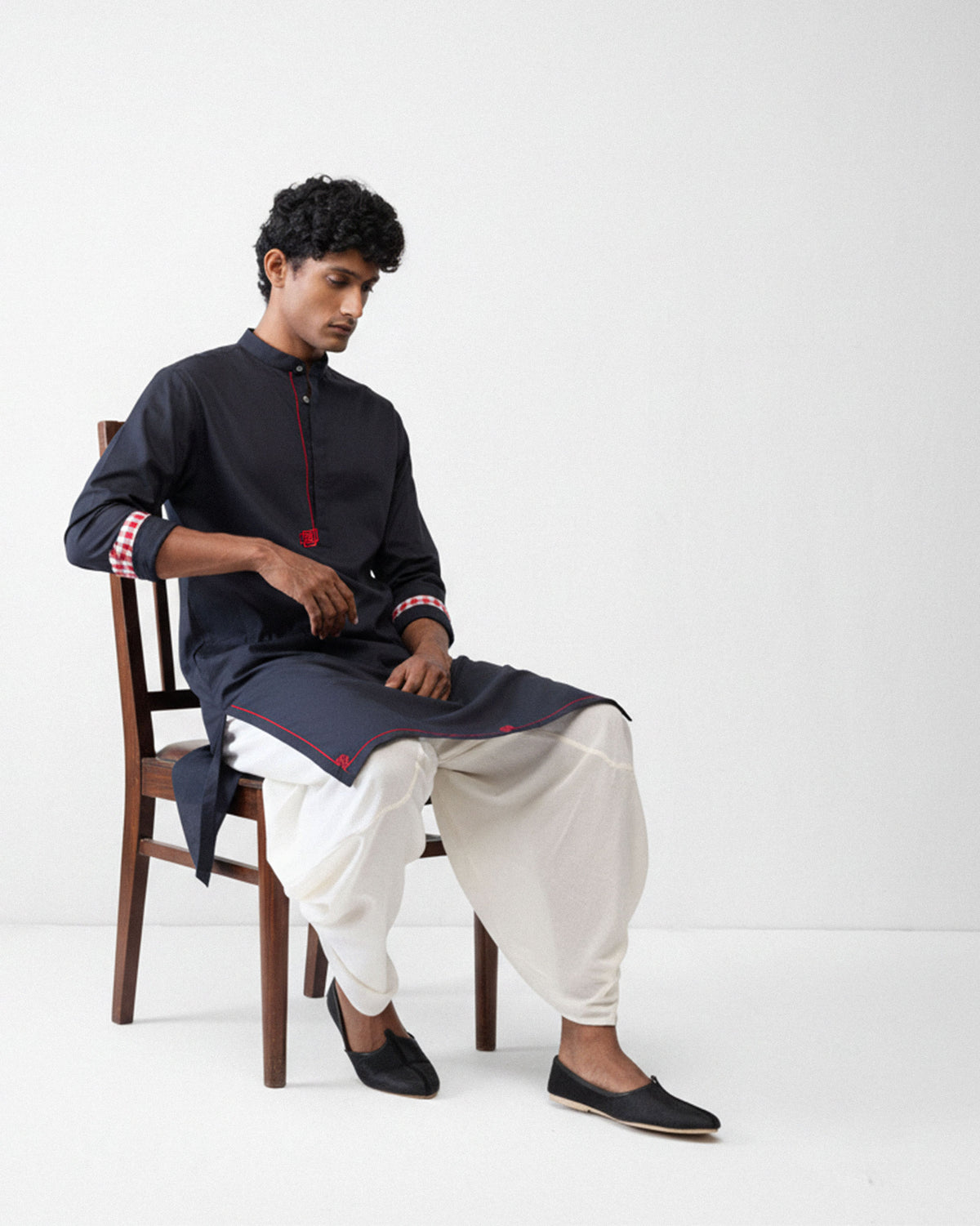 - A festive standout, the Arrham Kurta pairs deep black with refined threadwork, giving tradition a fresh, contemporary edge. Designed for evenings of gathering and celebration, it brings a touch of opulence without feeling overdone.