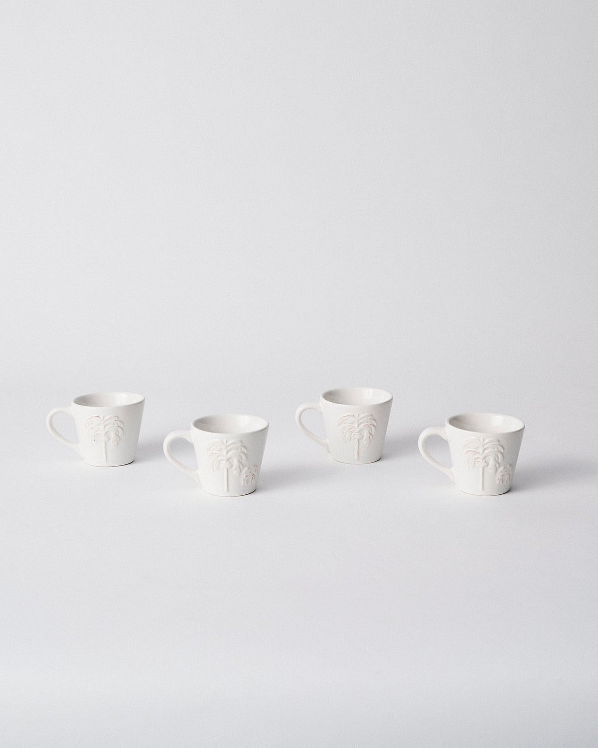 - The Ele Palm Espresso Mugs are designed for rich, full-bodied brews, crafted from durable stoneware with an ivory finish.