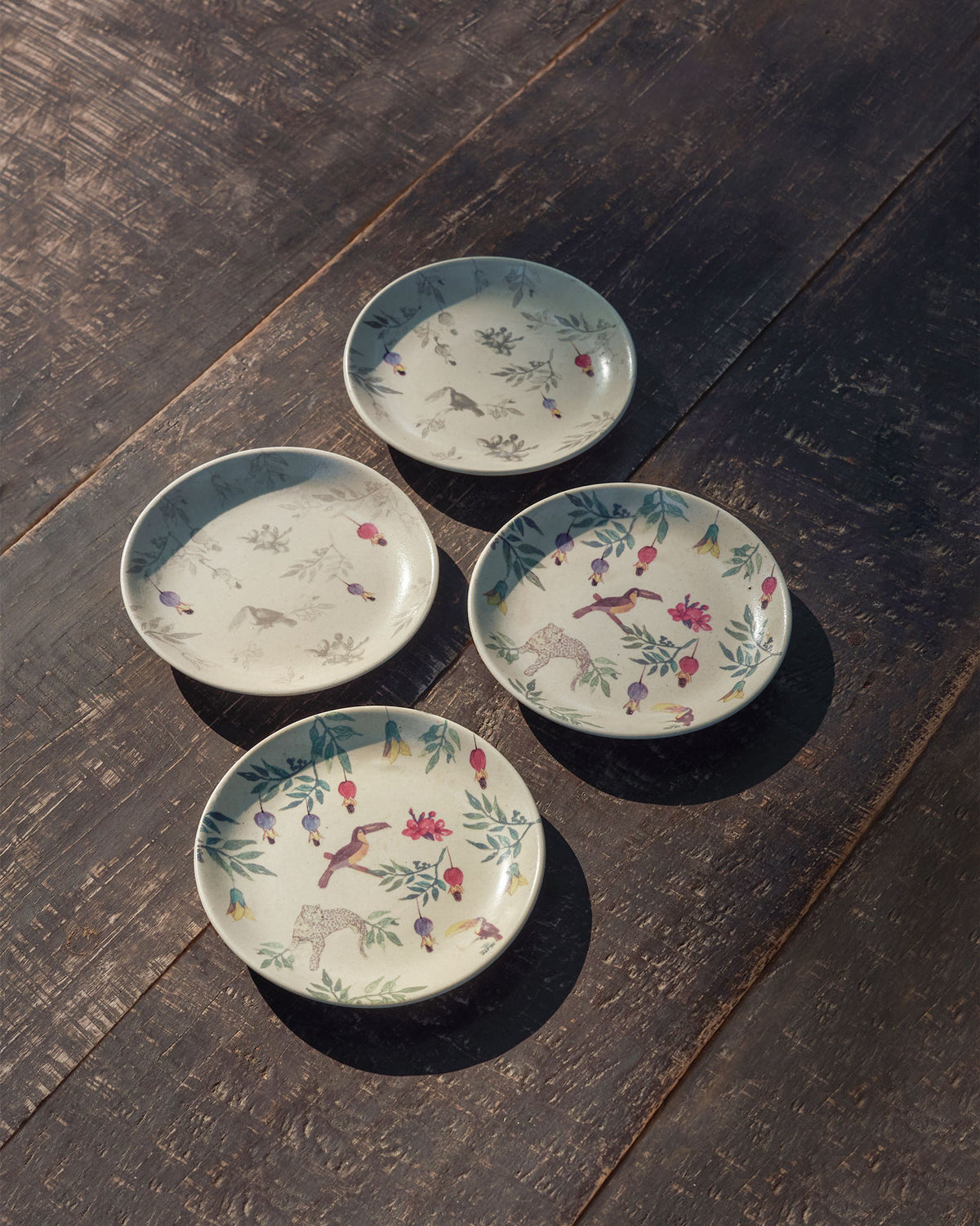 • Find toucans, Chinese bell flowers and lush foliage perched atop two, and the merest hint of colour on the other two