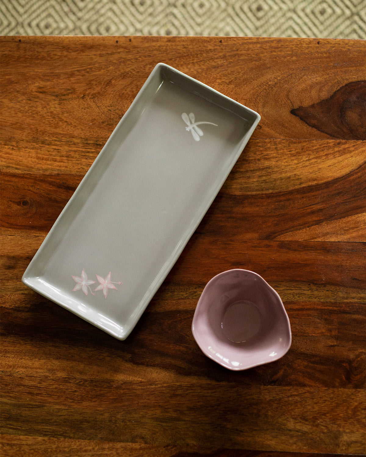 - Peppered with a dragonfly and little flowers, our chip and dip platter is perfect for when you're expecting guests at home