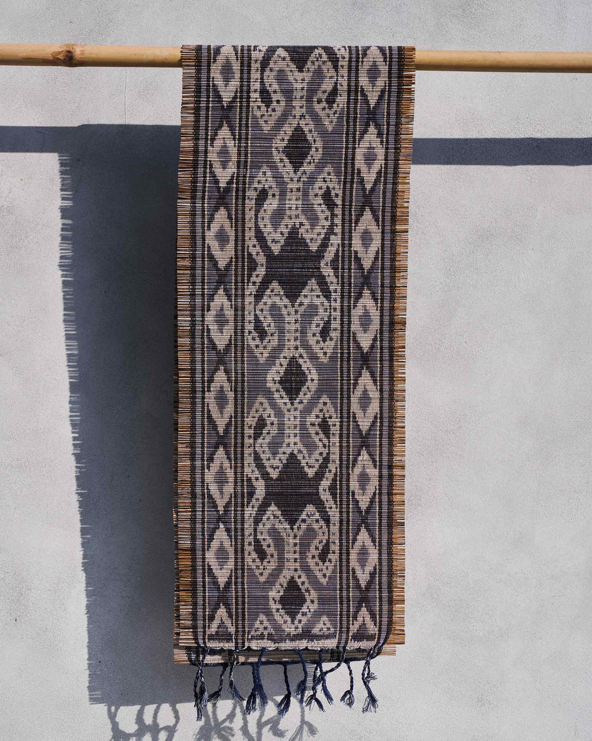- An ode to the beloved technique of ikat: hand-woven runner in palm stick and cotton thread.