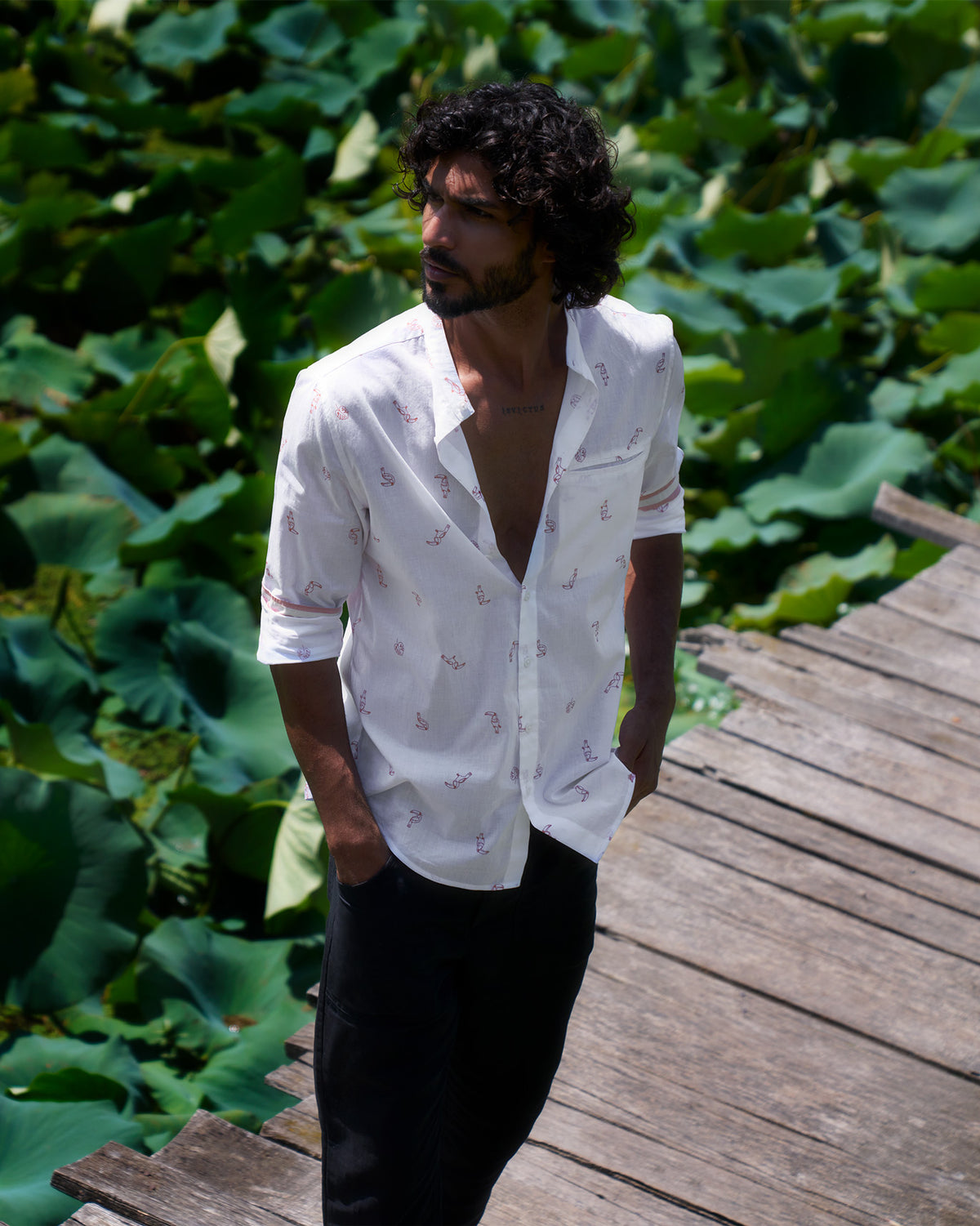 - Nicobar’s Slim Fit shirt features toucans of Bali. It captures the tropical spirit of Bali with abstract illustrations of toucans in a pop colour against a neutral background.