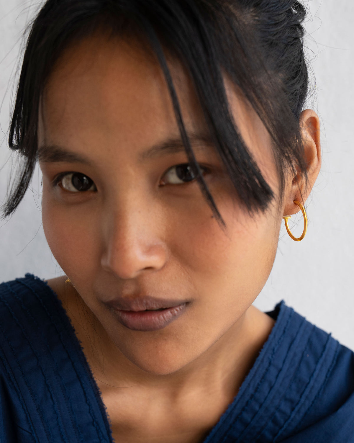 - Our medium sized gold plated hoops are perfectly sized to be worn as is, or to hold our weightier brass charms, in singles or multiples