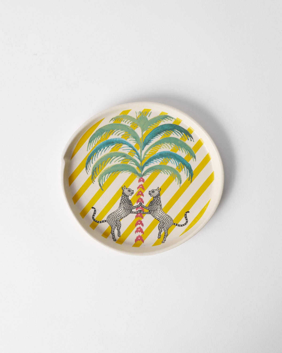 • Florals in full bloom, reimagined from Indus Valley motifs and set against striped yellow and ivory—this plate brings a little history to your table.