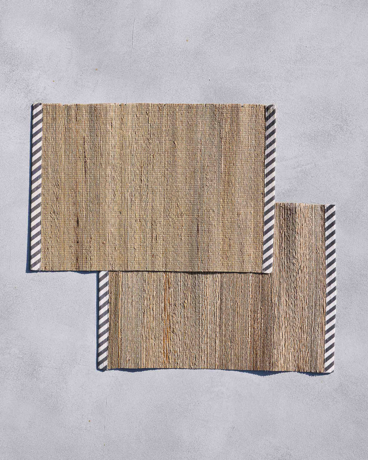 - A touch of rustic naturalness to your tablescape: artisanal placemats from dried banana leaf fibres Comes is a set of two.