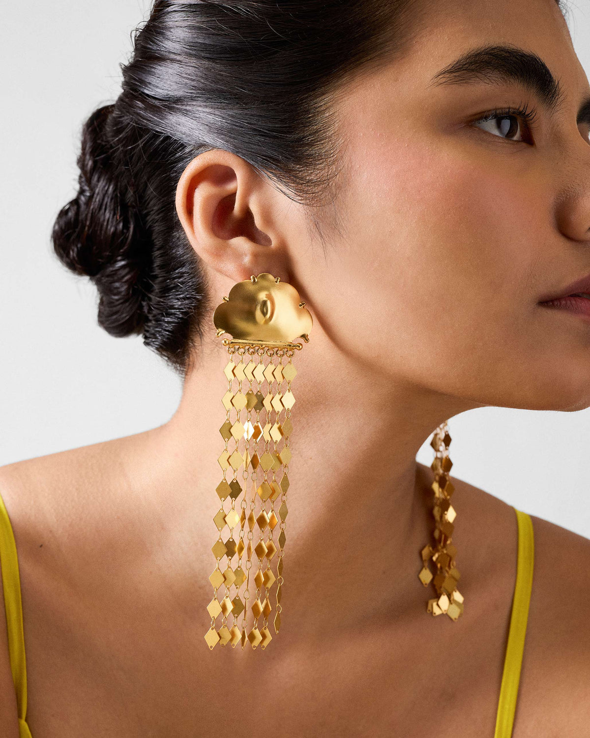• Lightweight, playful, and unapologetically dramatic, the Barish Shoulder Dusters are a celebration of monsoons. Echoing the rhythm of falling rain and the joy it brings, these statement danglers cascade gracefully to the shoulders, swaying with every step.