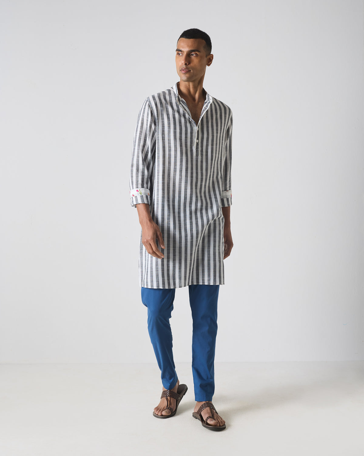 • A longtime in-house fave, we love this cotton kurta for the classicity of its cut and cool stripes.