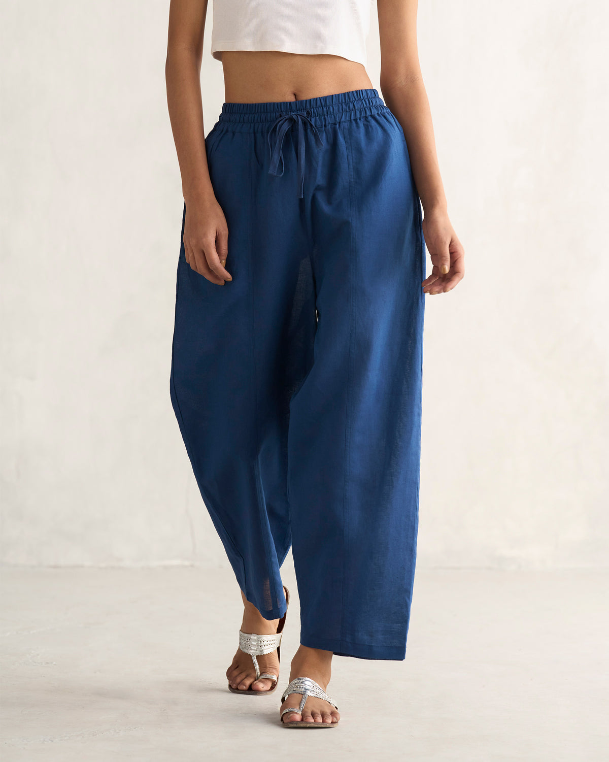 - The bold blue and flared fit make the navy Flayer Drawstring Pants a standout choice for those who appreciate style with a playful twist.