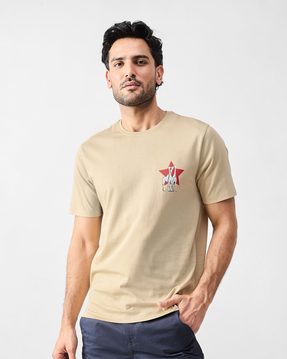 - The Giraffe T-shirt is a nod to the wild—crafted from 100% Supima cotton in solid khaki, it’s soft yet resilient for the road ahead. Blending the calm of the desert with the wild spirit of the jungle, Safar is a collection designed for exploration—capturing the journey within, before it even begins.
