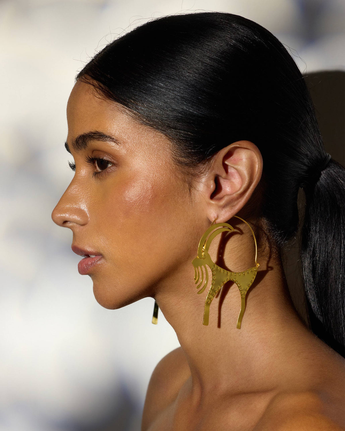 - Crafted with brass and plated in gold, these earrings are perfect to trot out for an added touch of whimsy.