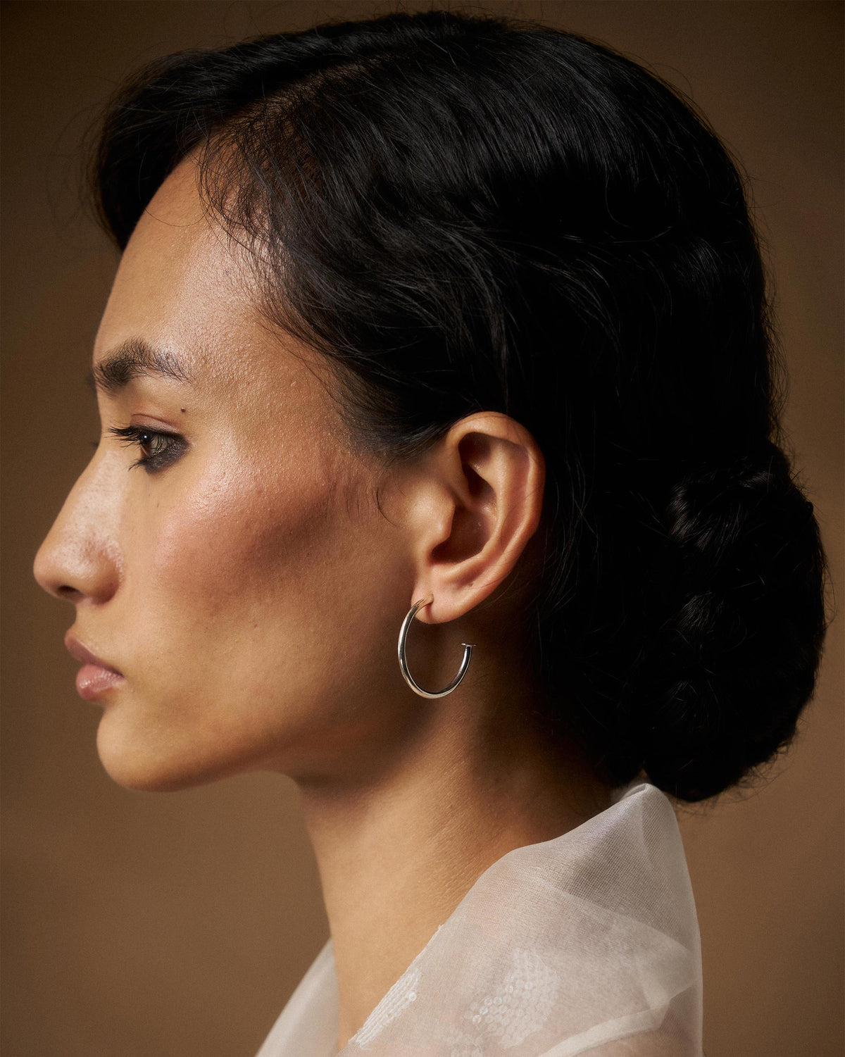 - Our medium sized sterling silver hoops are perfectly sized to be worn as is, or to hold our weightier silver charms, in singles or multiples.