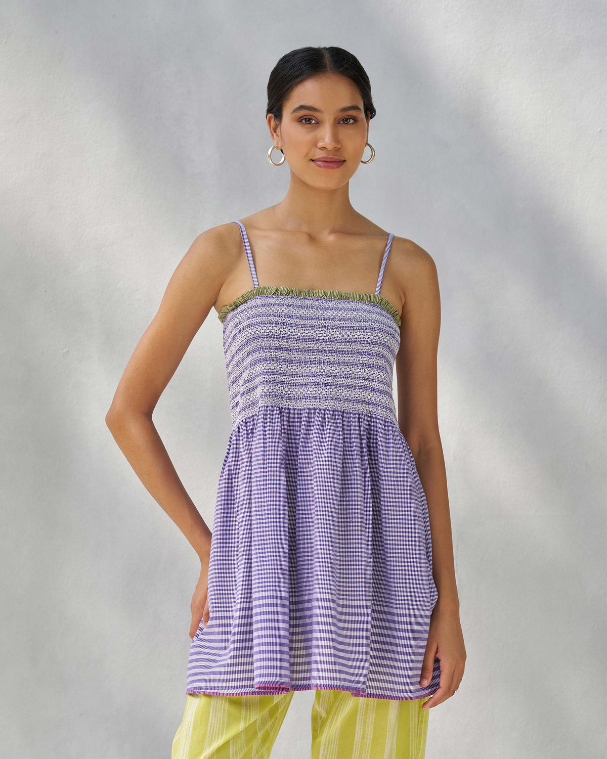 - Inspired by our travels to Zanzibar, the Paradise Top is strappy, comfortable and brings you our new palette of lime and purple. Featuring a combination of uneven purple and white checks, it bursts with vibrant colours and playful details.
