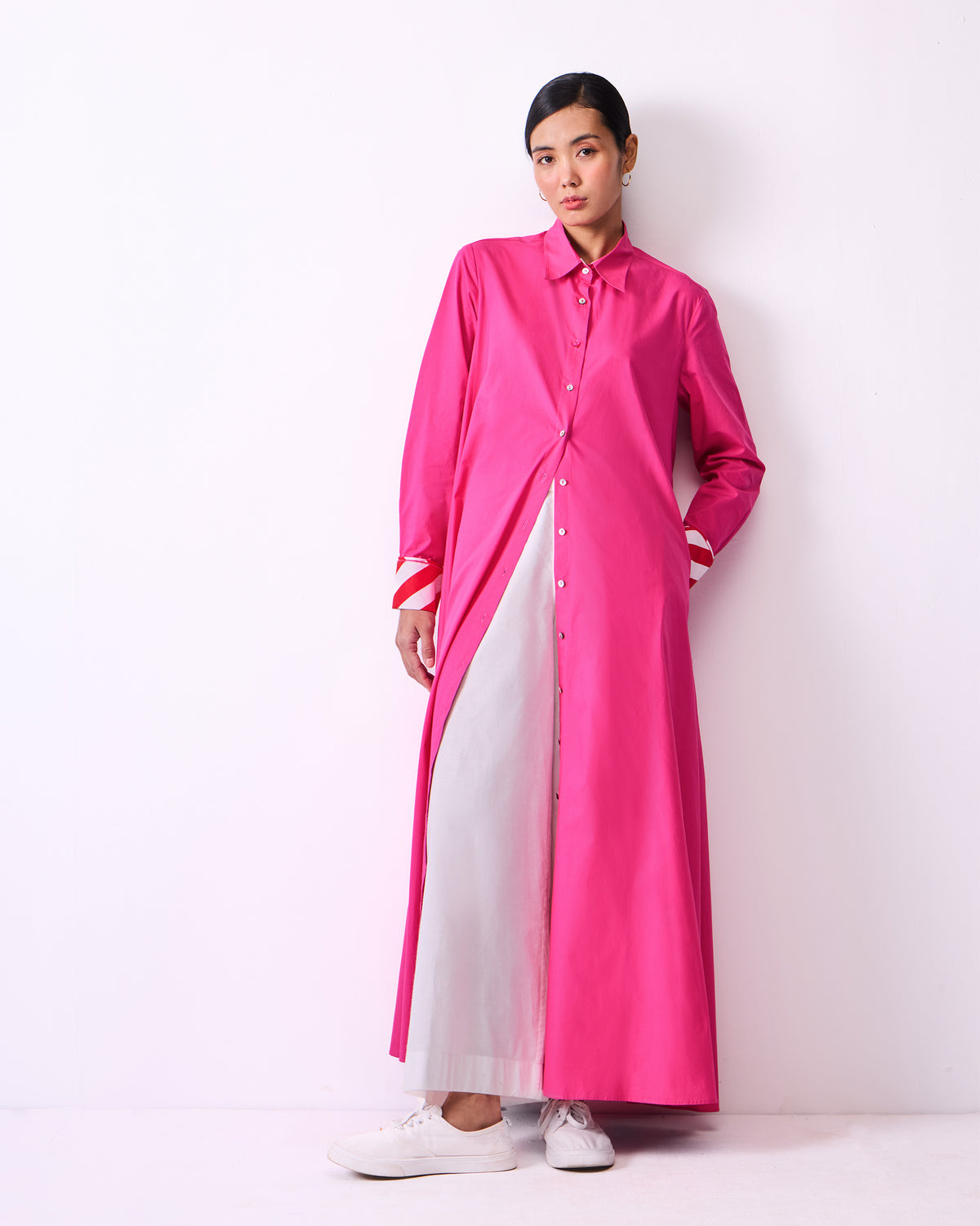 - The Pattaya Shirt dress stands out in bright fuchsia with its classic A-line silhouette.