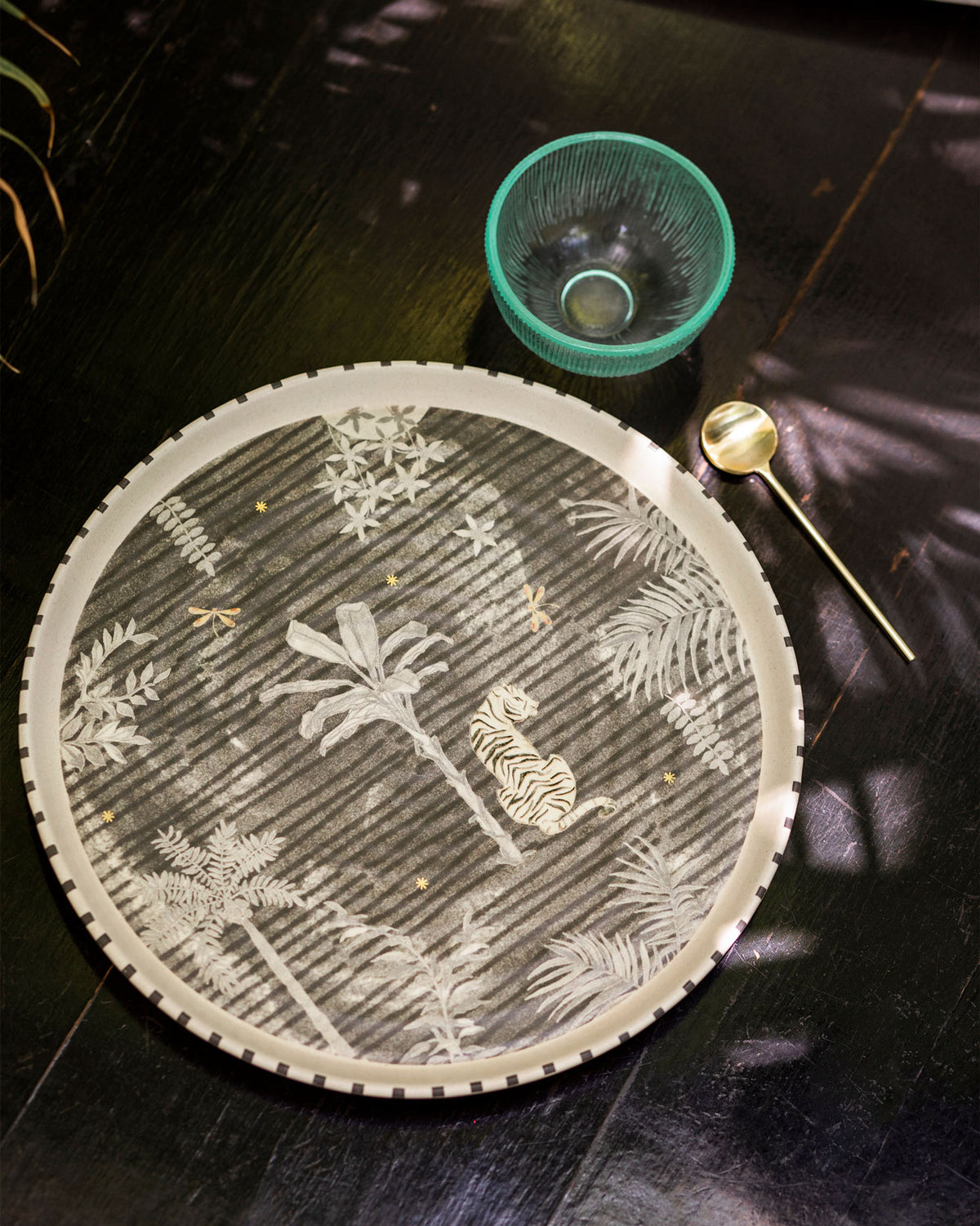 - The plate is crafted in smooth stoneware, whereas the transparent bowl is made from recycled glass