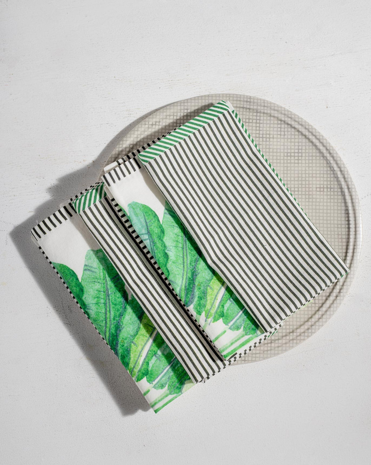 - Set of four napkins with the traveller's palm motif in the center