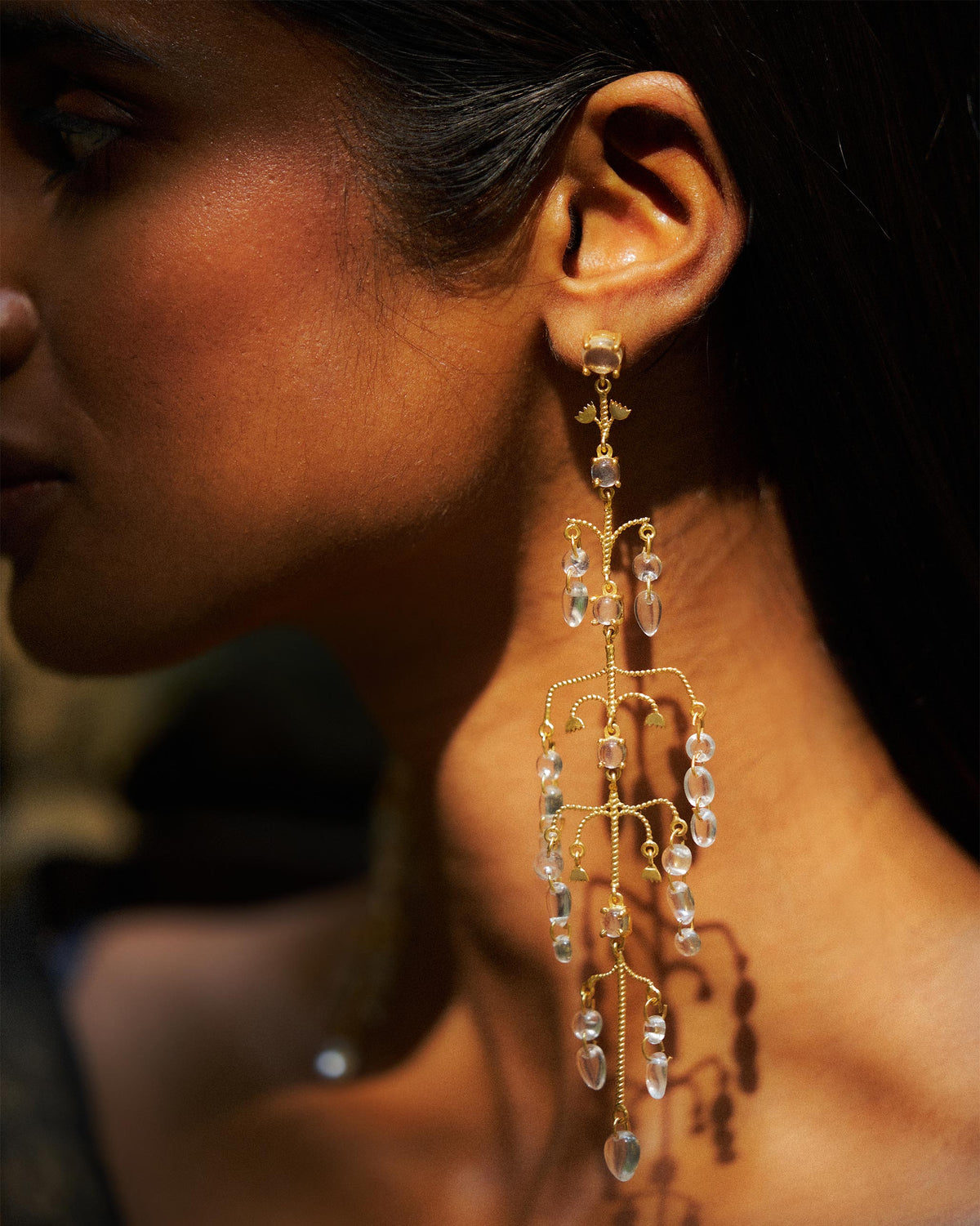- Featuring brass with gold plating, our favorite Sia earrings are beautifully accented with glass. Lightweight yet bold, they make a striking statement with their bold design.