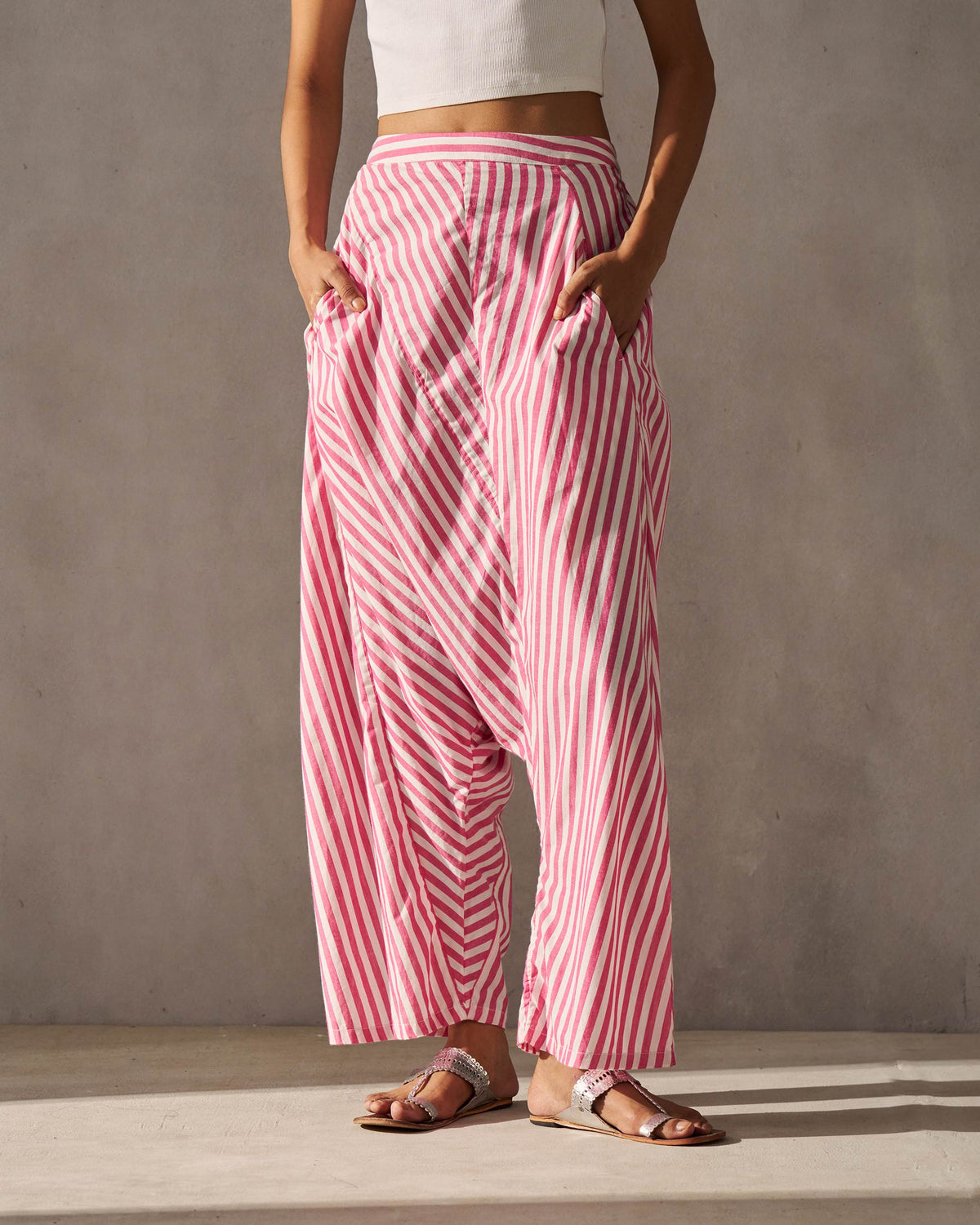 Souk Drop Crotch Pants - Fuchsia & Ivory