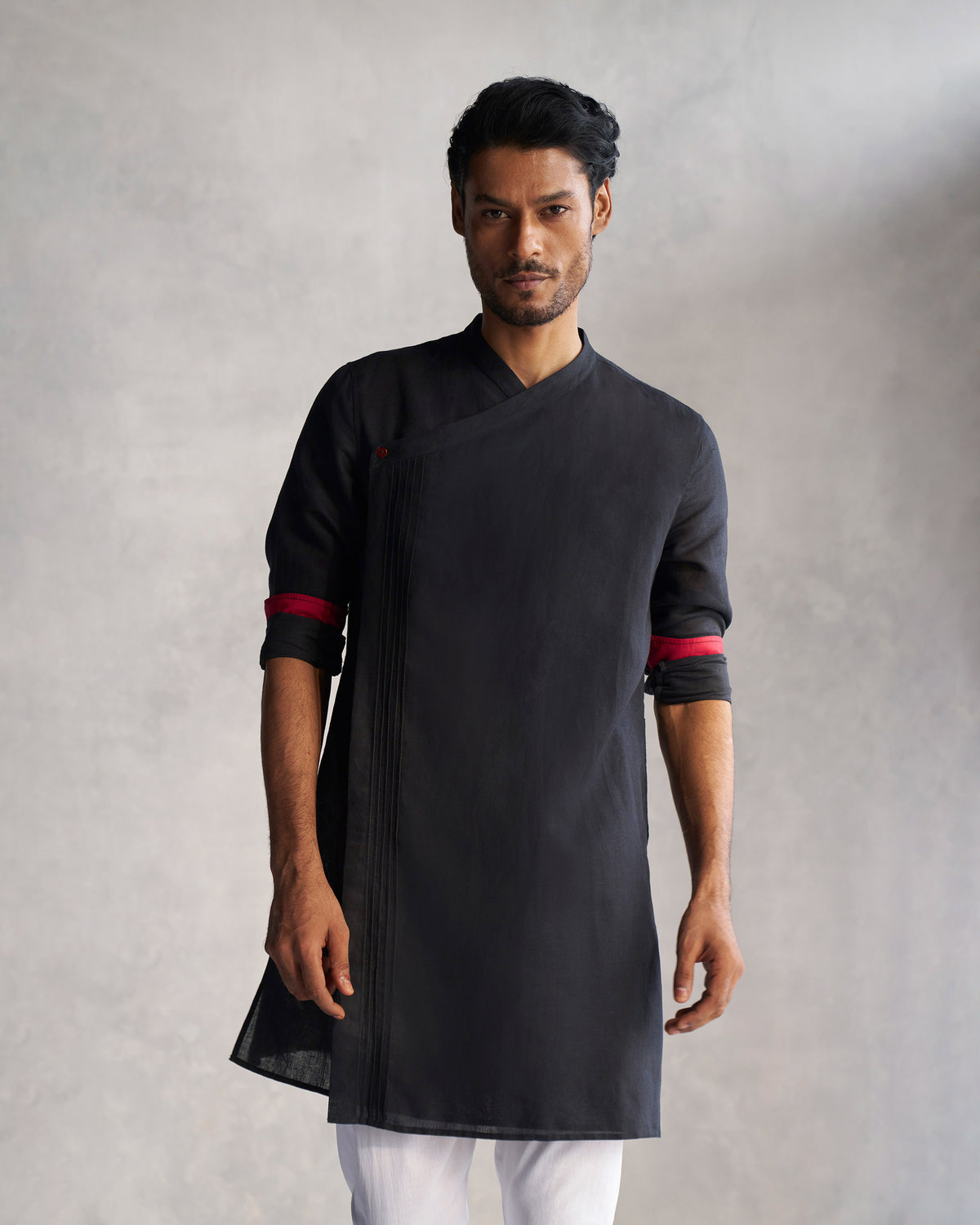 - Bring in festive season with a classic black kurta. The Staple Kurta features subtle yet distinctive details such as trimmed fabric inside the moonpatch and cuffs, along with a red star button on each sleeve placket.