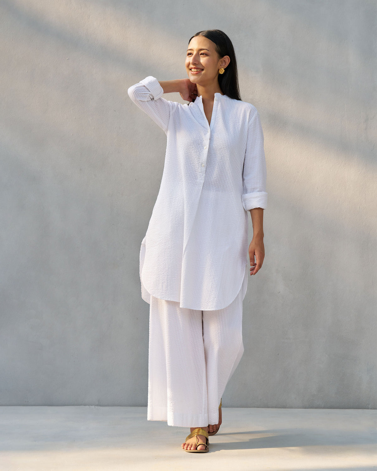 - A set of two of our signature styles, the Basic Mid Length Kurta and the Basic Pyjamas in white, the perfect pair for lounging.