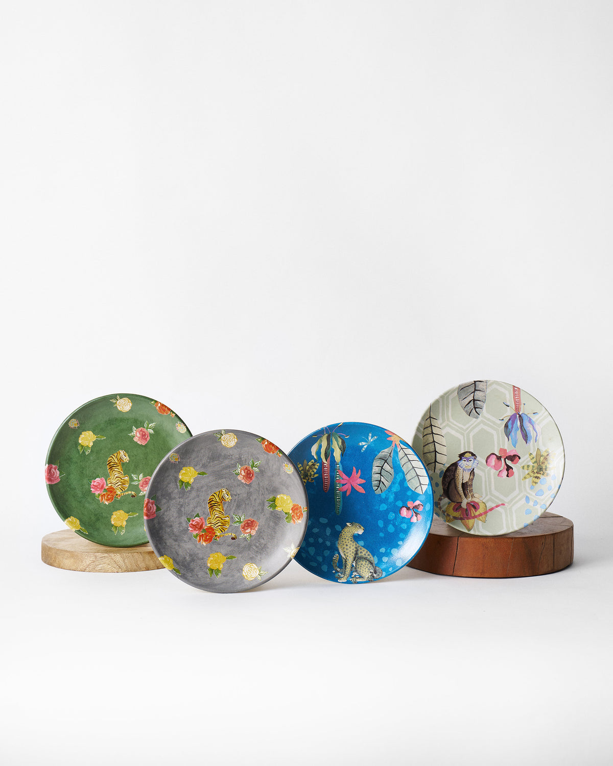 - Bring home the set of Mahi Quarter Plates, drawing inspiration from Zanzibar's rich flora and fauna to add a tropical touch to your tablescapes. The pair of plates come in contrasting shades of deep blue and white with a cheeky lemur and the graceful leopard Nadira.