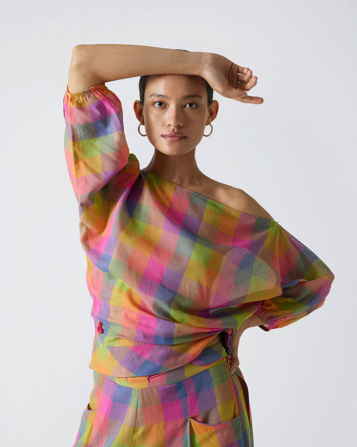 Yoi Hem Pants - Purple & Chartreuse Printed