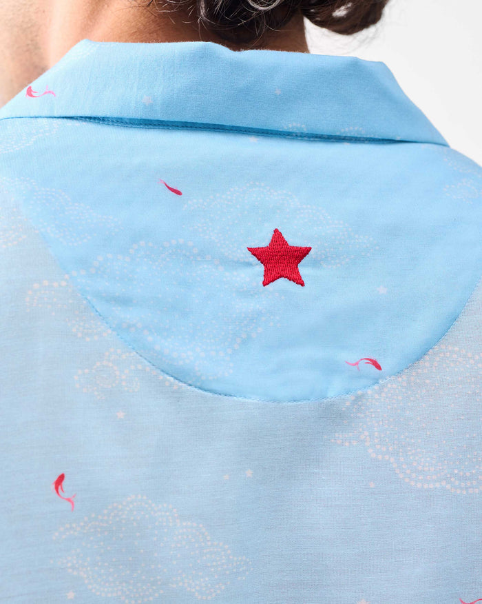 Lama Smocked Kurta - Charcoal & Watermelon Embroidered
