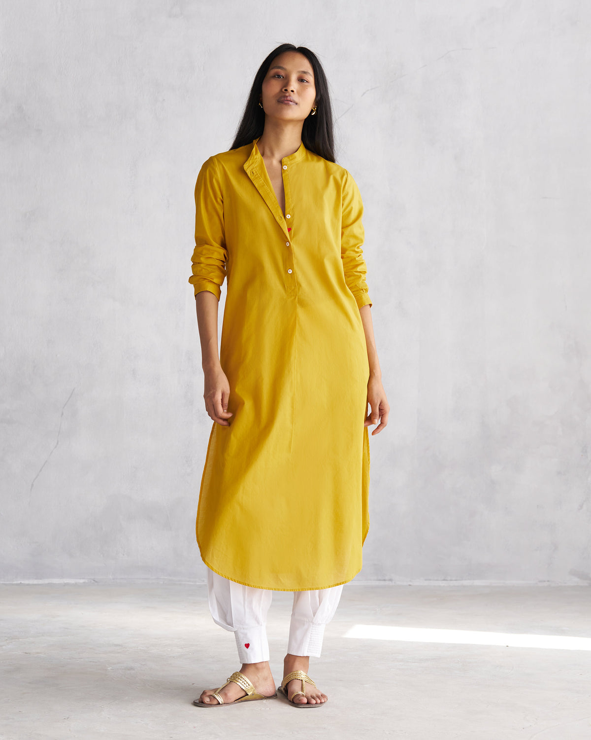 - This easy-wearing kurta falls below the knee, and with its body-skimming fit, it pairs perfectly with pyjamas or a pair of jeans