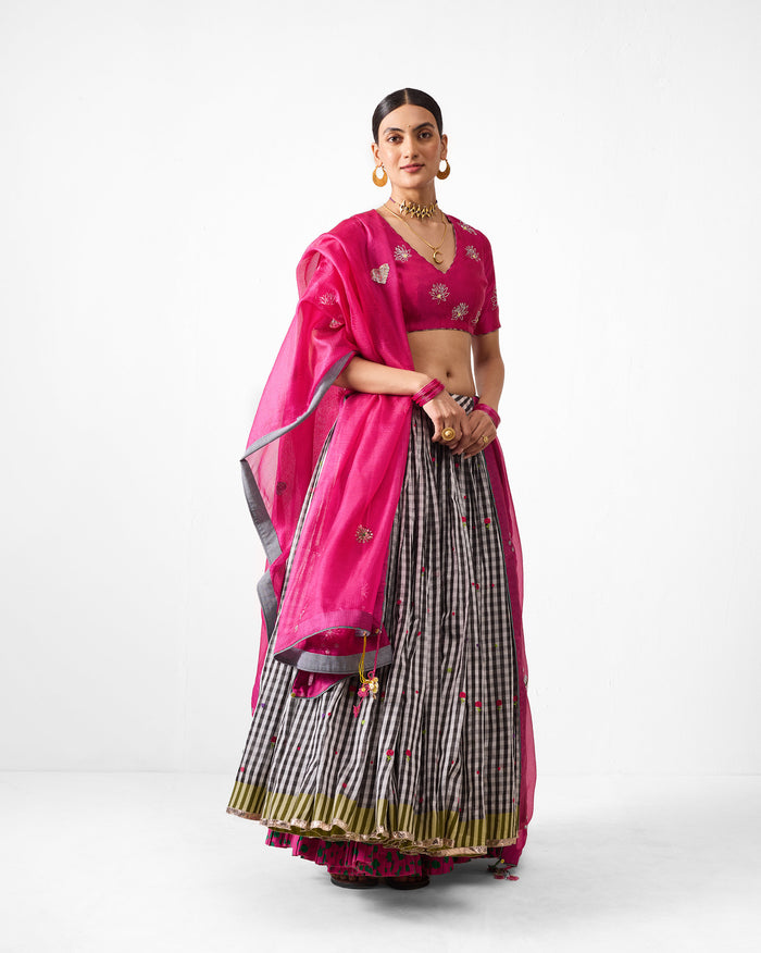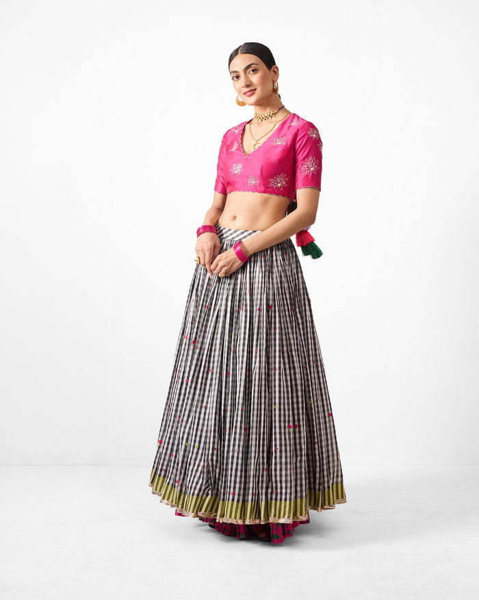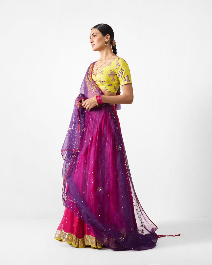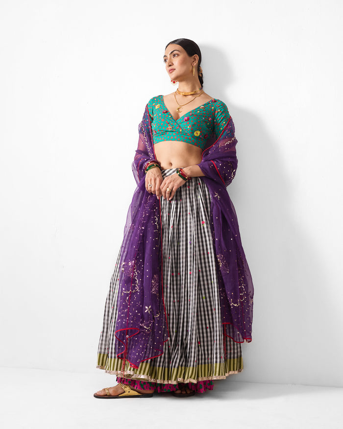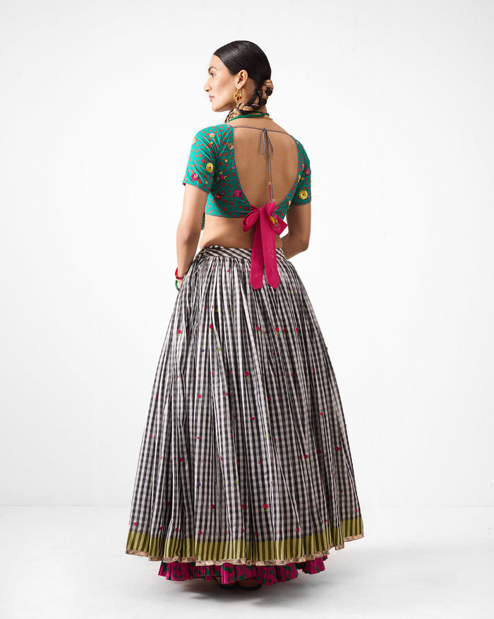 Dori Blouse - Sea Blue & Fuchsia Embroidered