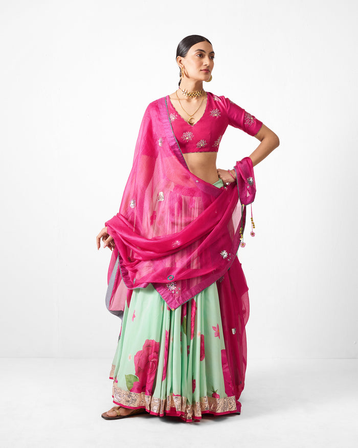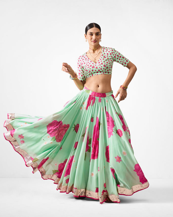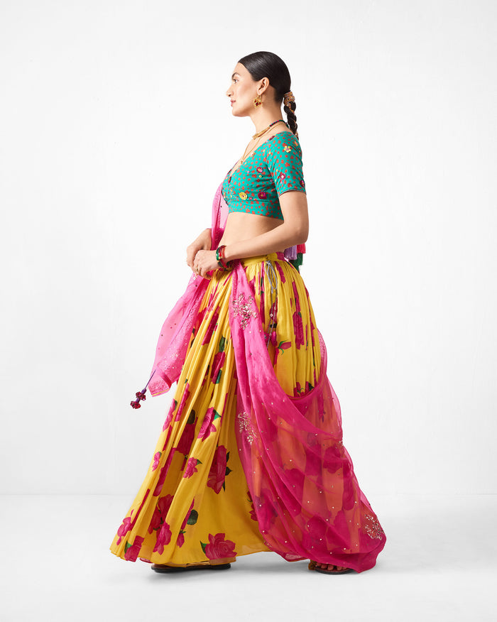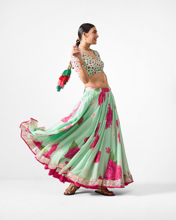 Vaya Skirt - Sea blue & Fuchsia Printed