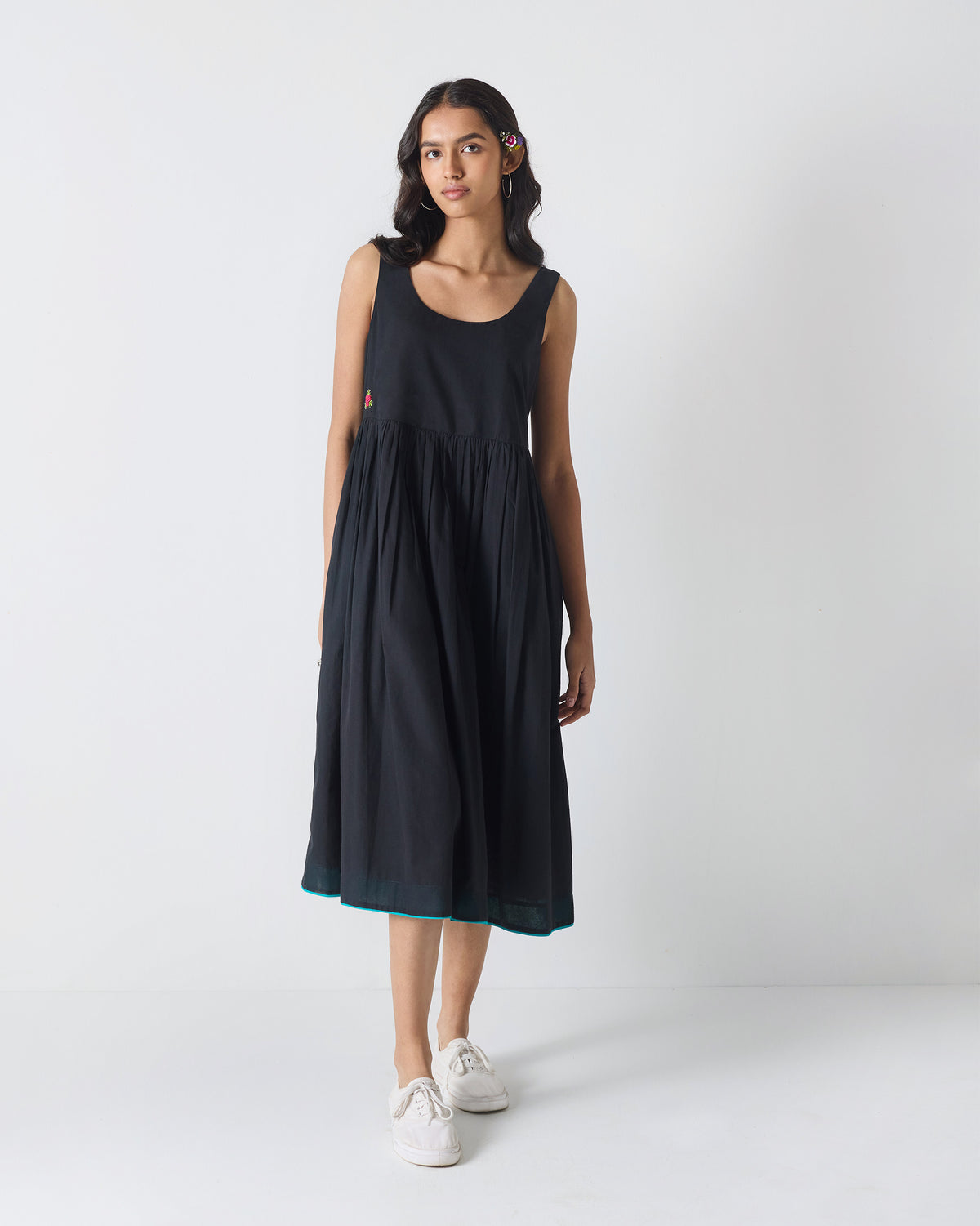 - The Ashwini Dress is a black, sleek and timeless piece crafted in soft yarn dyed cotton