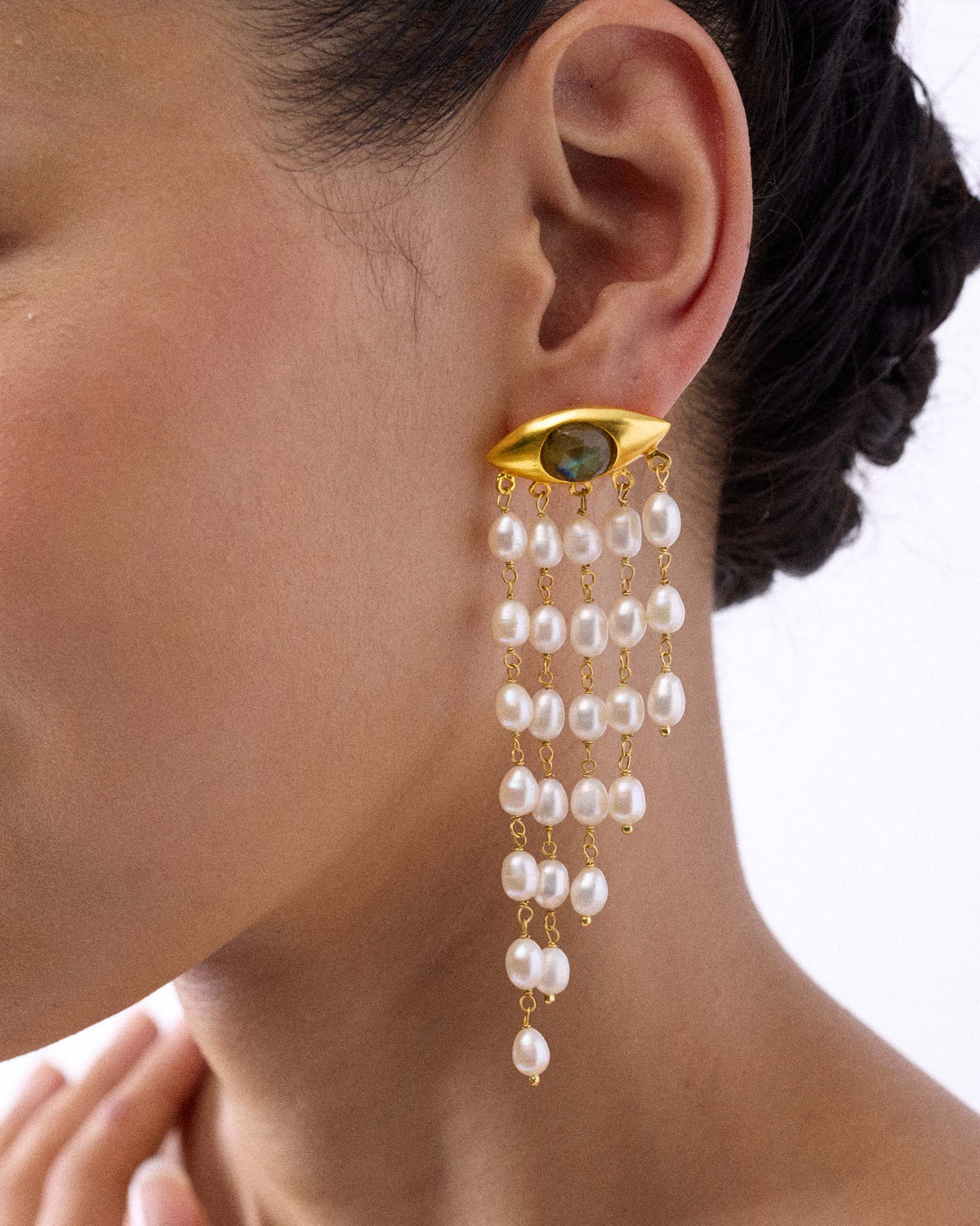 - Sweeping, bold, and dramatic, the All Seeing Earring is a striking statement piece that steals the show. Inspired by the Indus Valley civilisation, known for its trade in lapis, turquoise, and shells, materials often used to craft protective Nazar eyes.