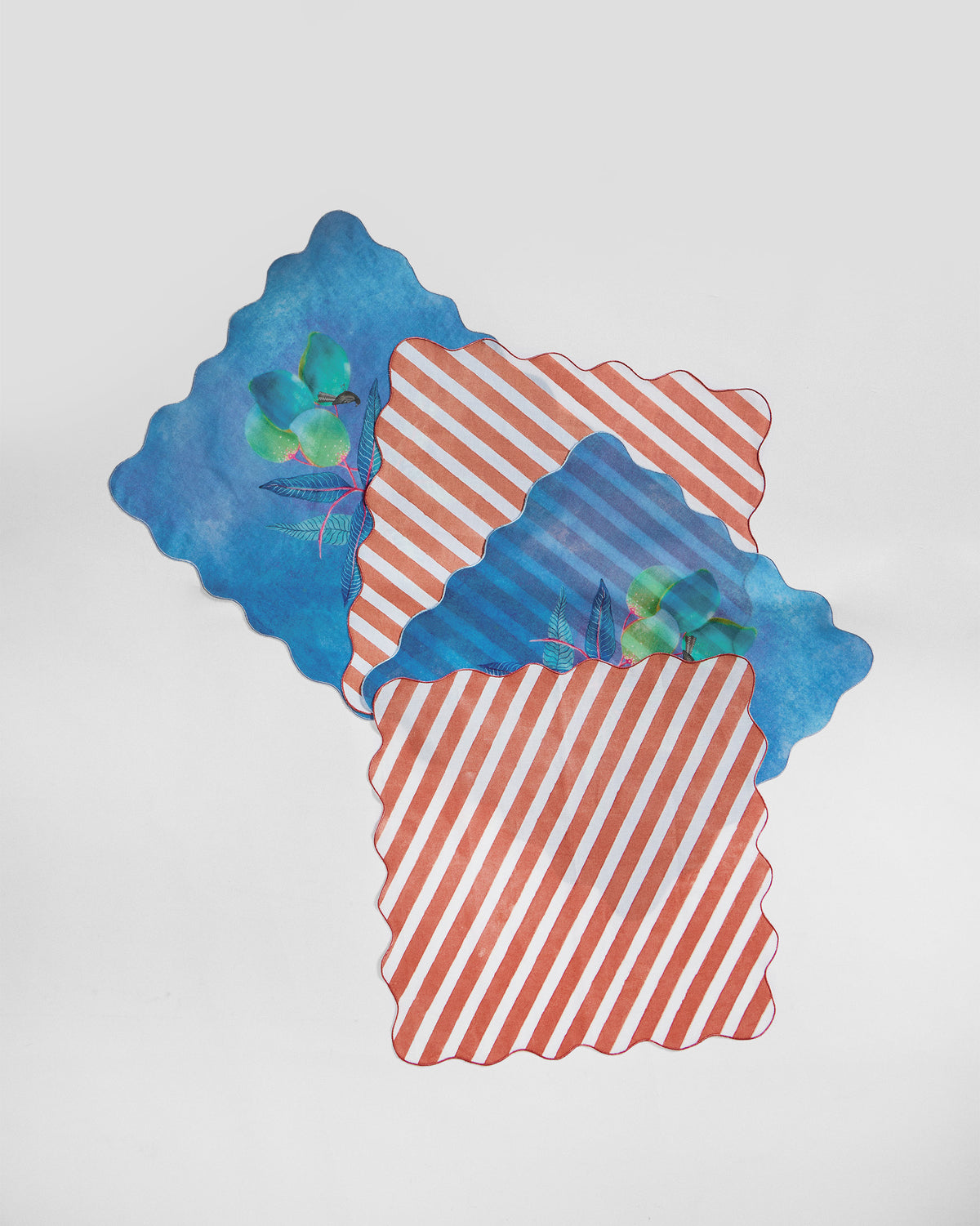 - Inspired by the rivers of India, which connect people, cities, and rituals, we turn inward to where it all began. The Ambi Dining Napkin Set features stripes and charming dangling ambis, with scalloped embroidery along the edges.