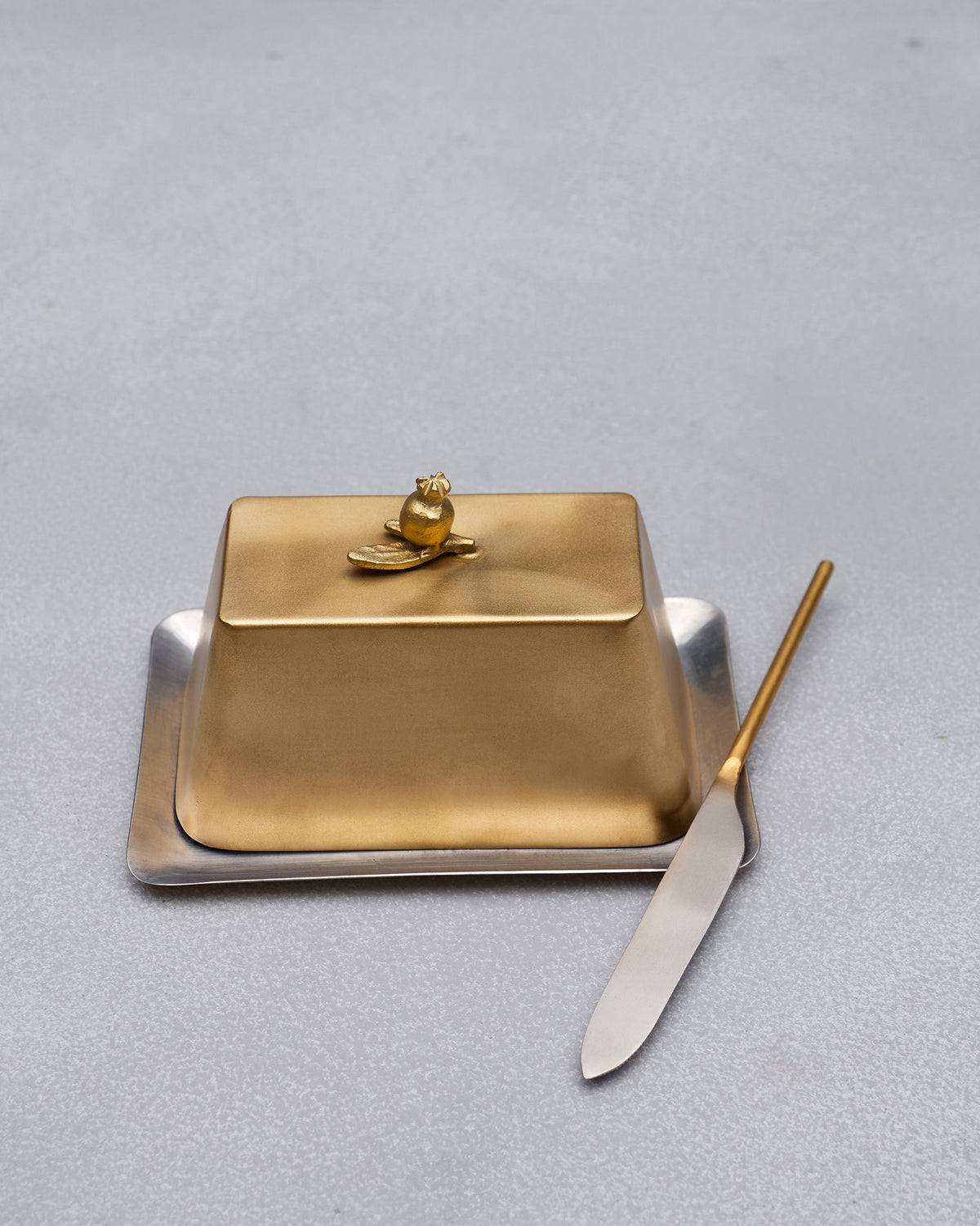- The Anar Butter Dish is a charmer, a gilded brass butter dish and knife that adds beautifully to your breakfast table.
