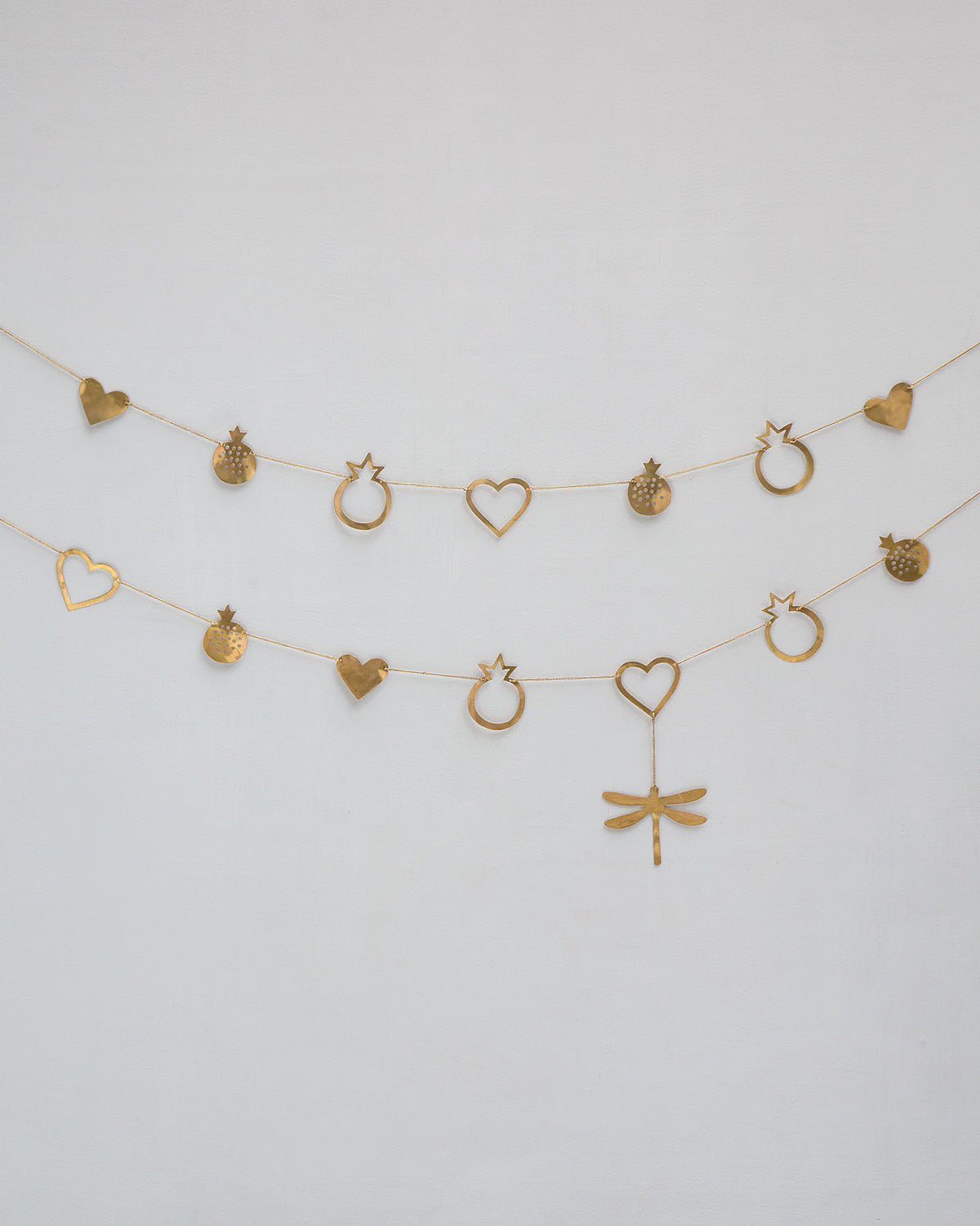 • A Nicobar toran through and through, ours is made of matte gold-finished anars and hearts strung on gold metal and is perfect to hang up at your doorstep, or even inside your home anywhere for an added twinkle.