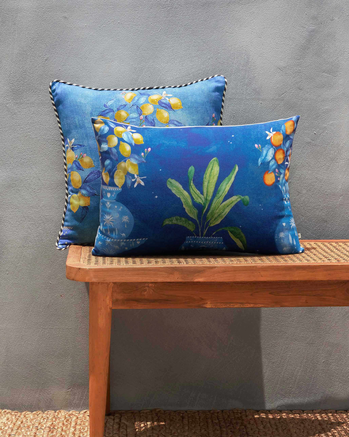 - The colours and textures of Morocco, from vivid cobalt and white pottery to the flurry of bright lemons all around, inspires the Asfar Cushion Cover.