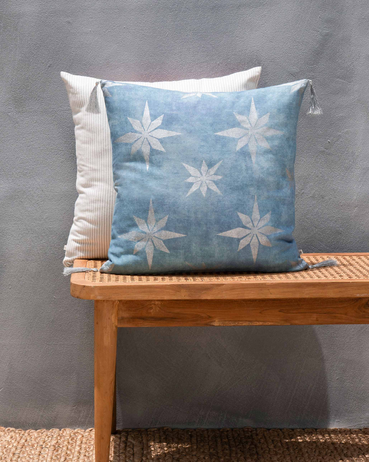 • The colours and textures of Morocco, from vivid cobalt and white pottery and Zellij mosaic tilework inspires the Azraq Cushion Cover.