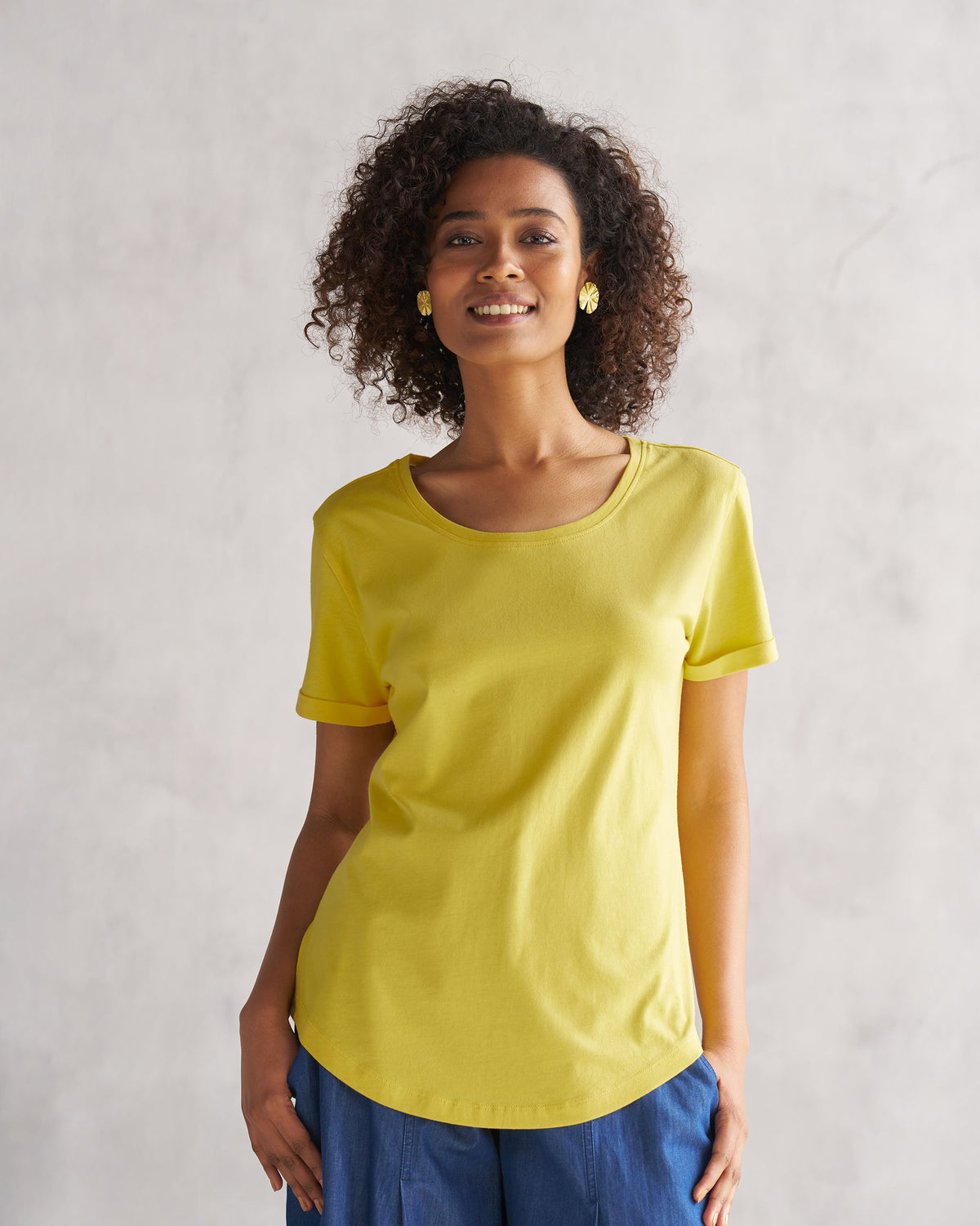 - Basics that are anything but basic; a comfortable organic cotton tee that promises to be the hardest working piece in your closet.