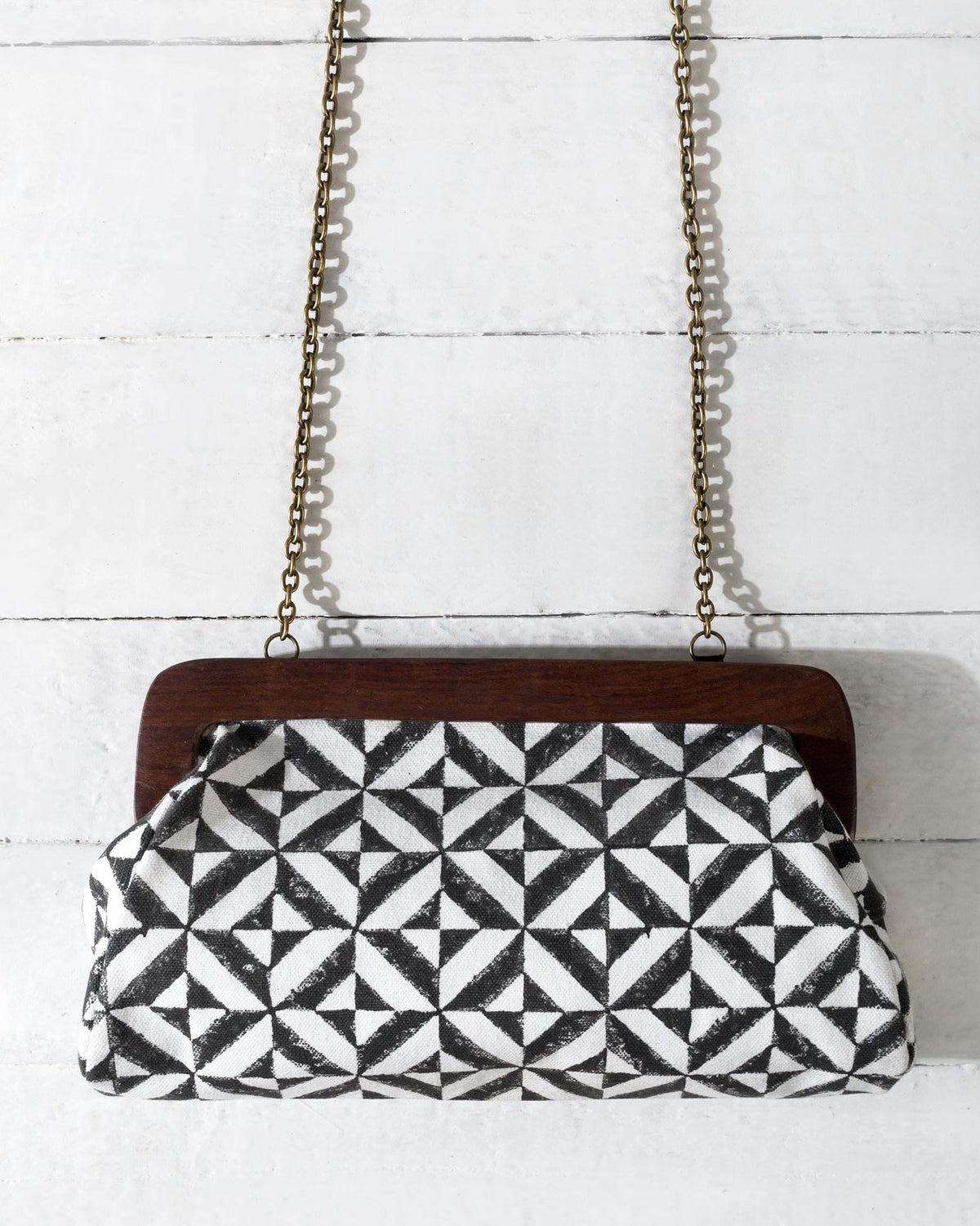 - Hardwearing canvas looks particularly pleasing with a geometric block print and a rustic wooden frame