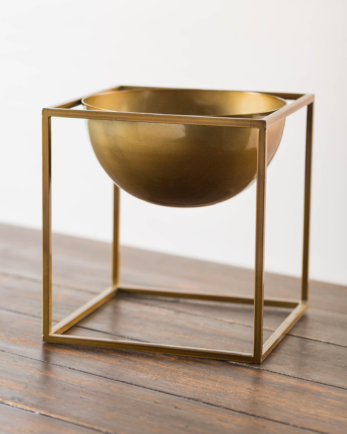- Our beautiful brass-hued planter is perfect for indoor plants, but is also a great trinket repository or study table accessory