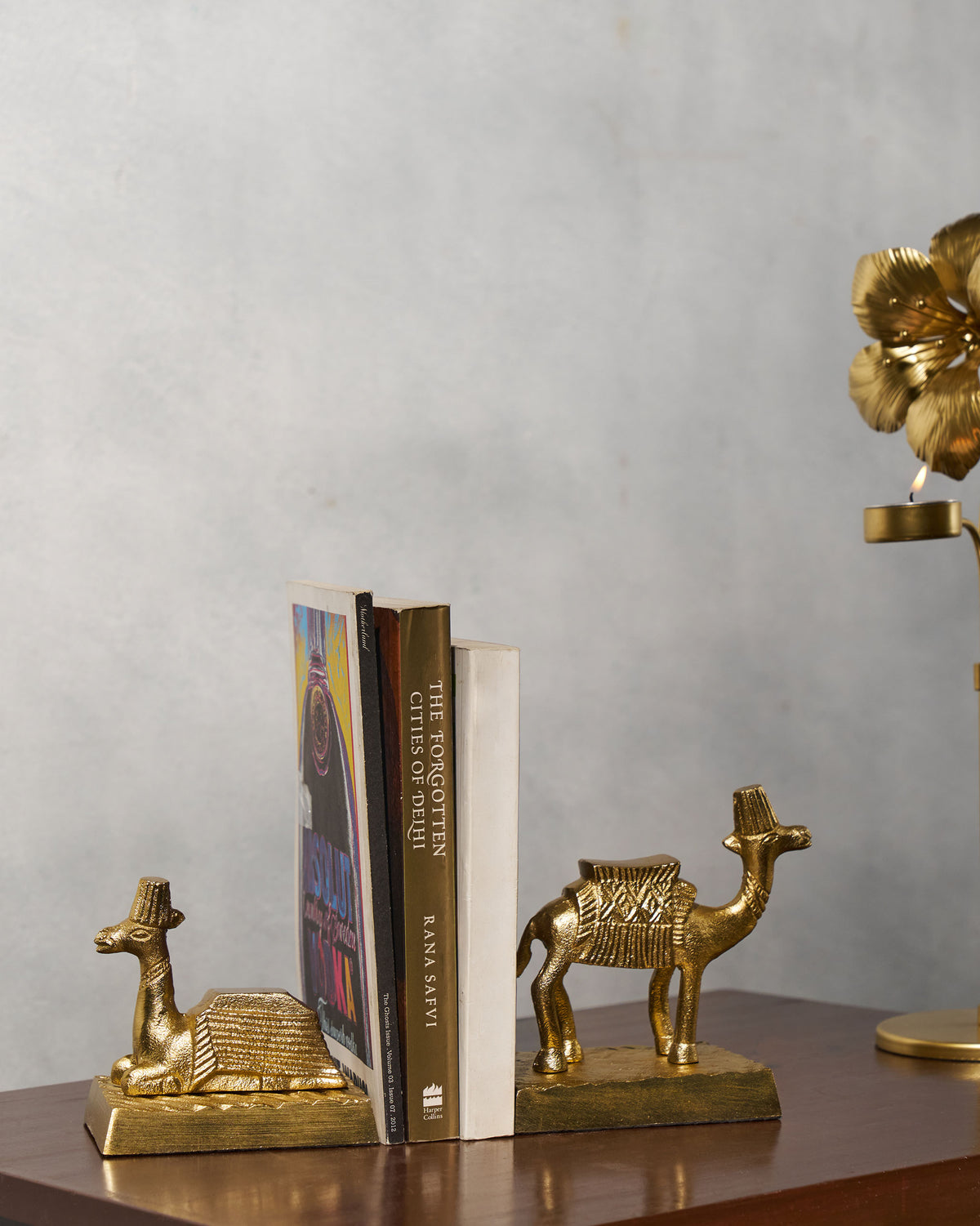 - Form and function come together with the Camel Bookends, the perfect pair to lend a leg to your bookshelf's style.