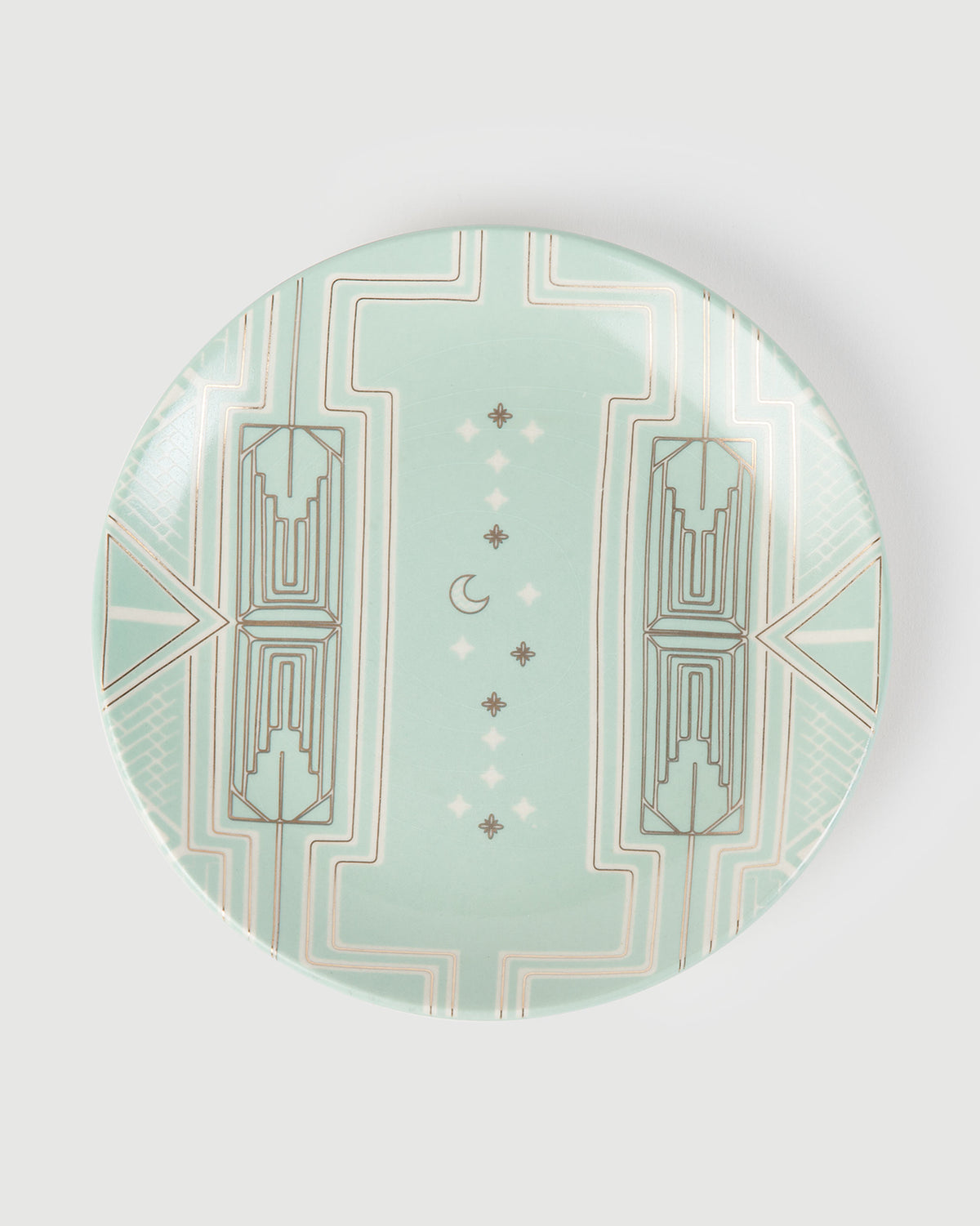 - Inspired by the art deco architecture of Mumbai, our Chand Sitara quarter plate comes in a calming seafoam, and is adorned with silver and gold accents, along with the moon and stars, to add that whimsical element.