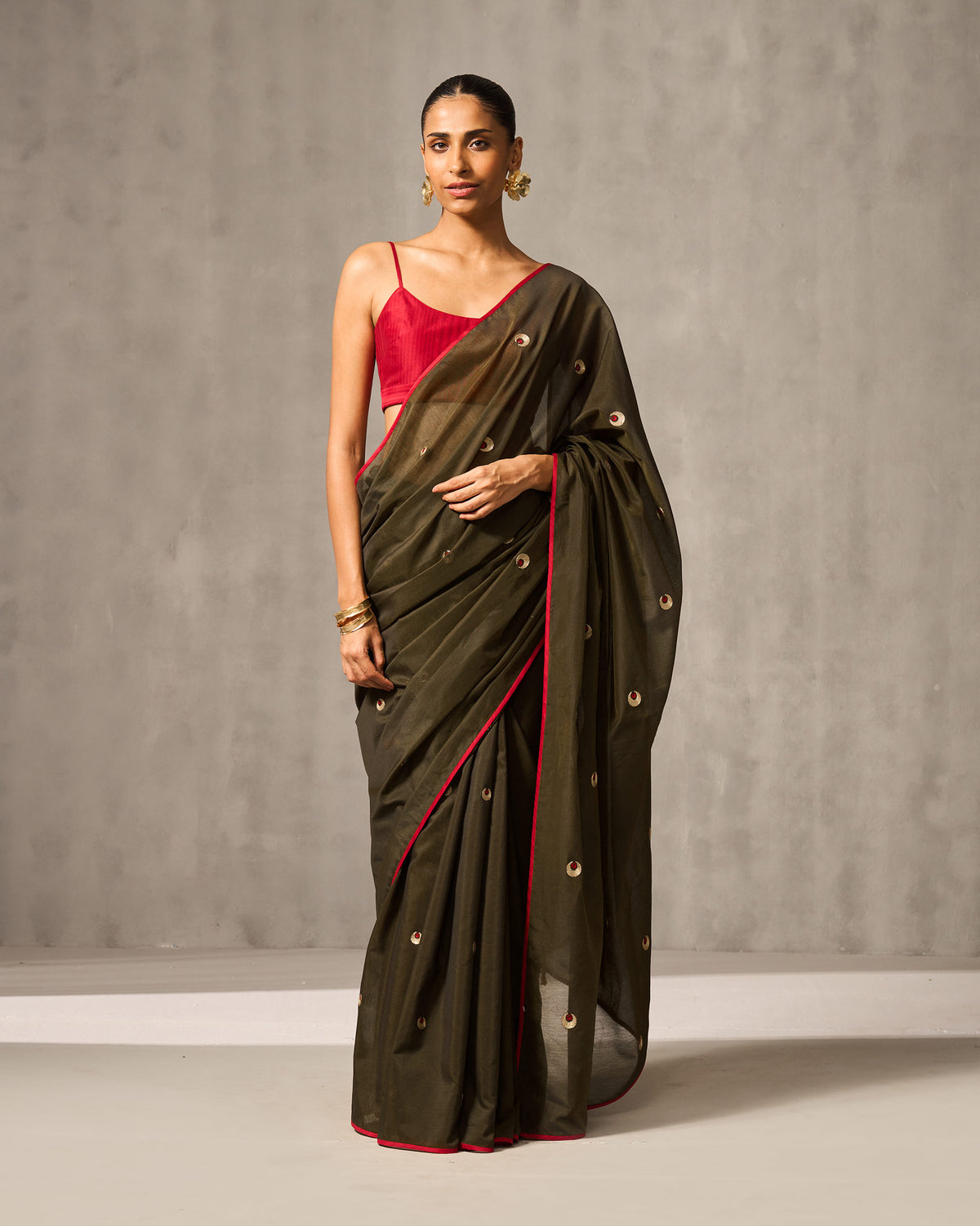 - A dreamy piece for the festivities or everyday, the Chandni Sari is a festive delight with embroidered double moon motifs against a deep green base. The moon is a motif cherished in both Nicobar and Moroccan cultures, the moon symbolises new beginnings and life’s cycles, reflecting renewal and transformation.