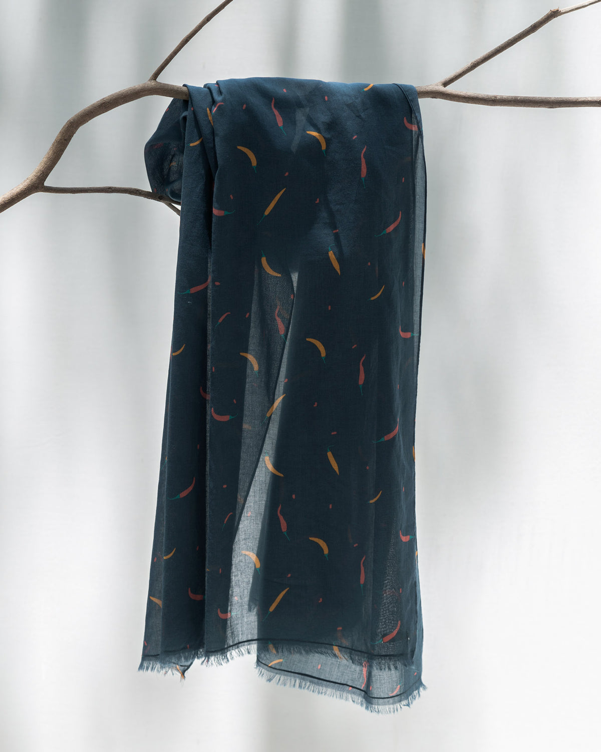- This oblong scarf is peppered with chillis and pairs well with bold outfits