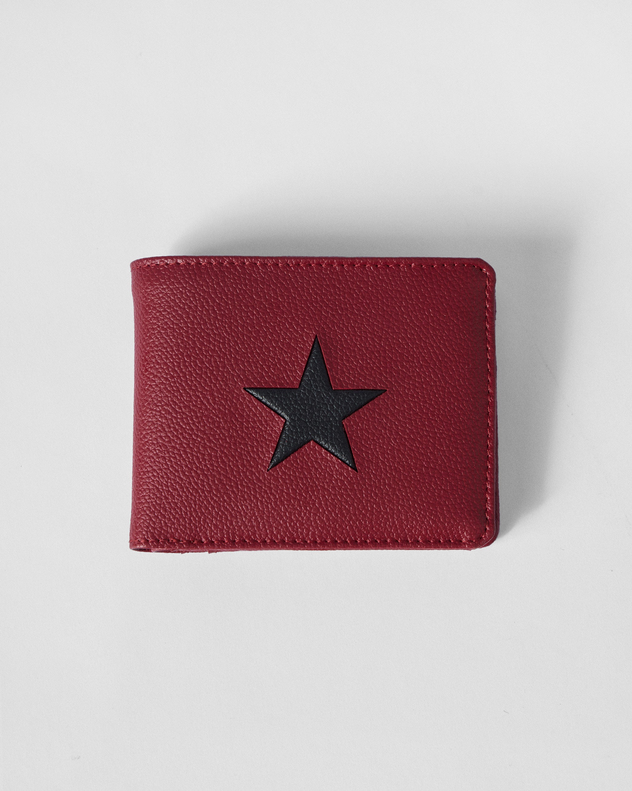 - A classic, reimagined with a bold twist. The Bi-Fold Wallet arrives in deep black, marked by a striking red star.
