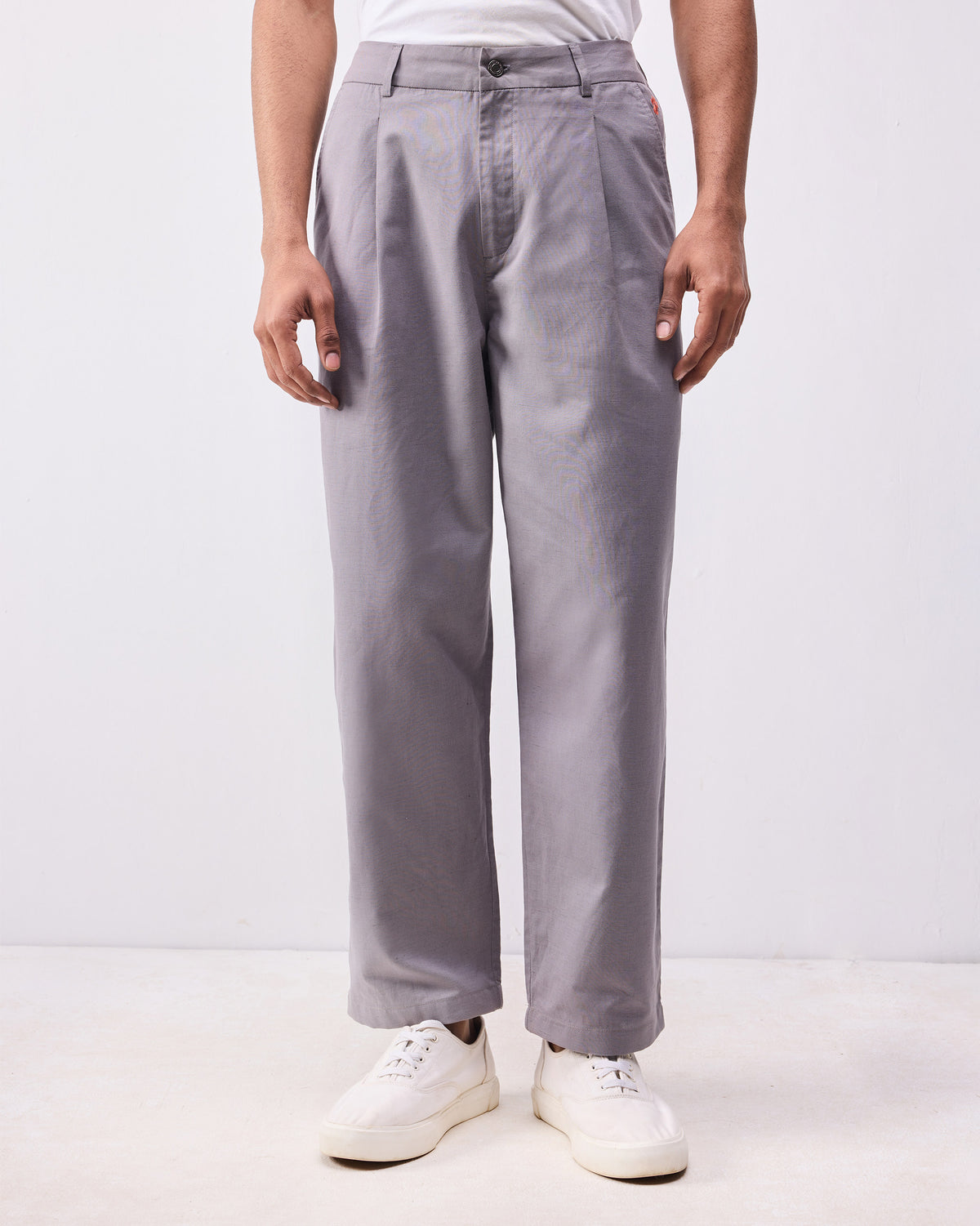 - The Classic Trousers in Grey are crafted from a premium linen-cotton blend, offering a perfect balance of lightness and durability.