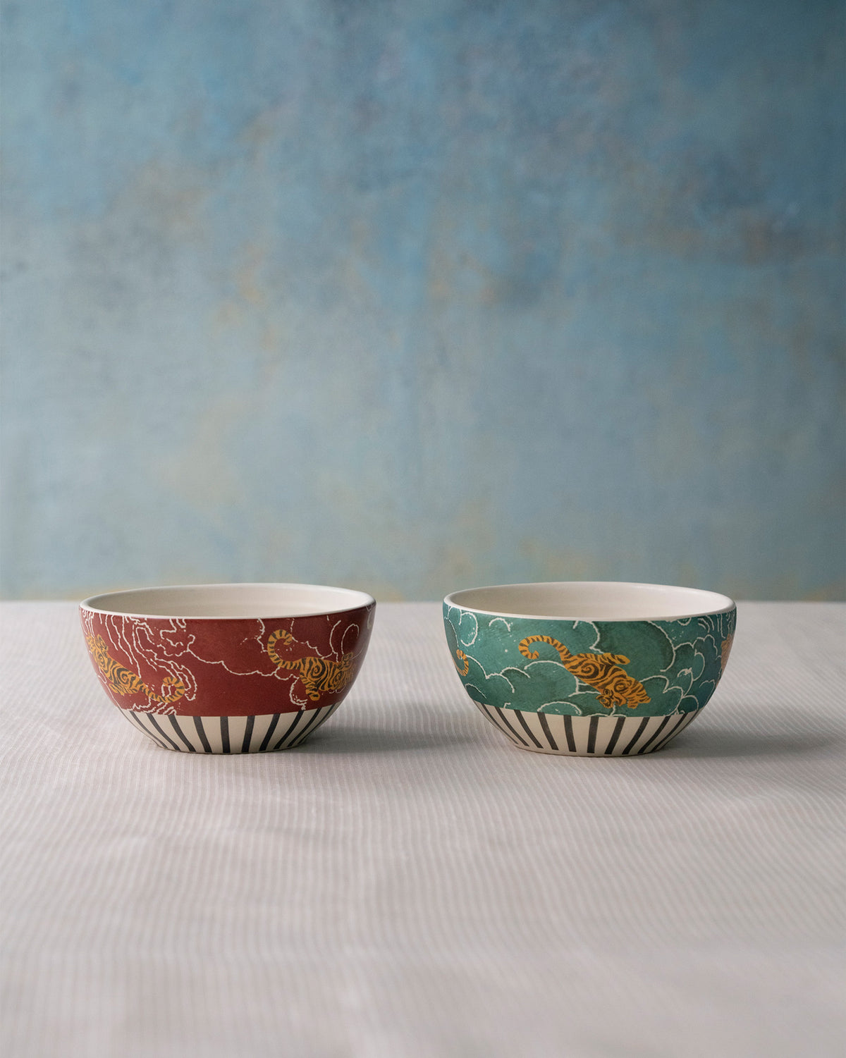 - Crafted in sturdy stoneware with tiger motifs, these bold and bright nut bowls are best used for serving nibbles over a round of drinks