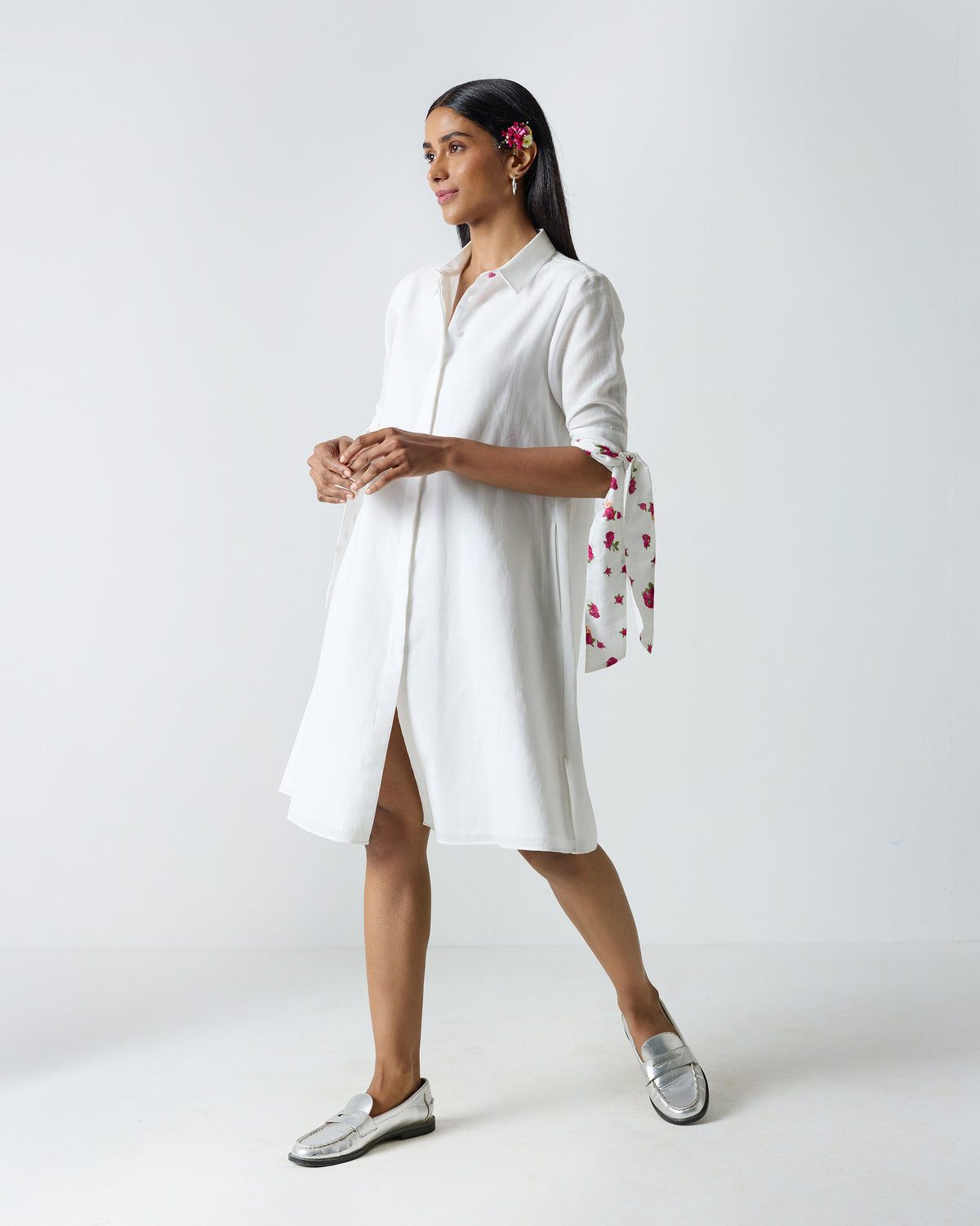 - The Collared Dress is a refined yet playful piece that blends classic styling with thoughtful details. Made from a breathable mix of linen cotton, this dress offers the perfect balance of softness and structure in a serene white.