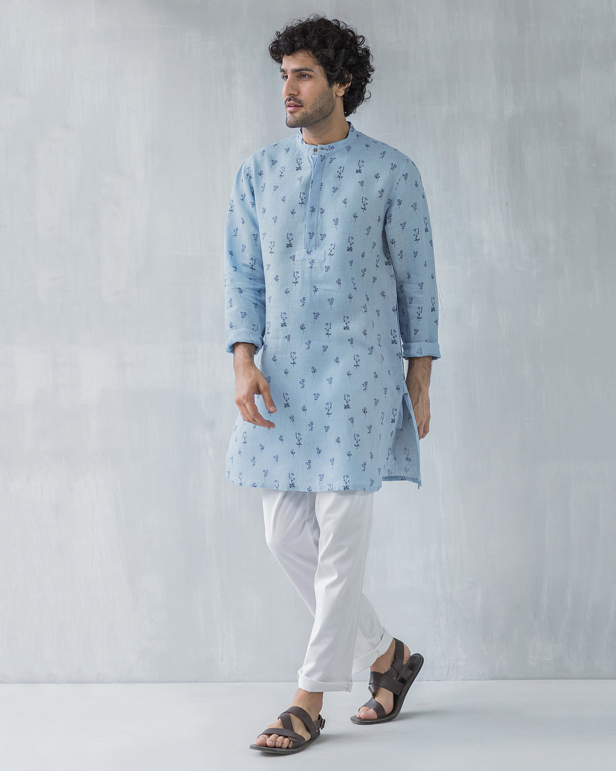 - This is a pale blue kurta in 100% linen that keeps you at ease in the tropical climes, all day long.